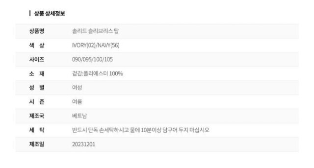 | 1. 제품 소재 (섬유의 조성 또는 혼용률을 백분율로 표시, 기능성인 경우 성적서 또는 허가서) | 상품상세참조 |