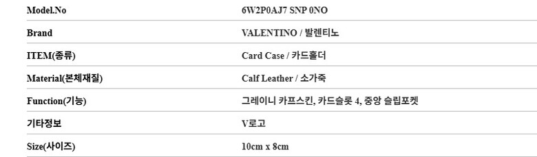 발렌티노 6W2P0AJ7 SNP 0NO (P0AJ7 SNP 0NO) 가라바니 V로고 카드지갑