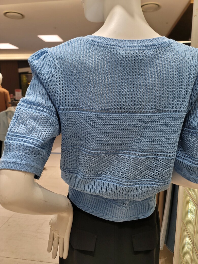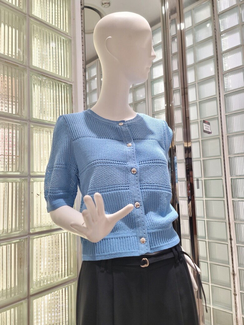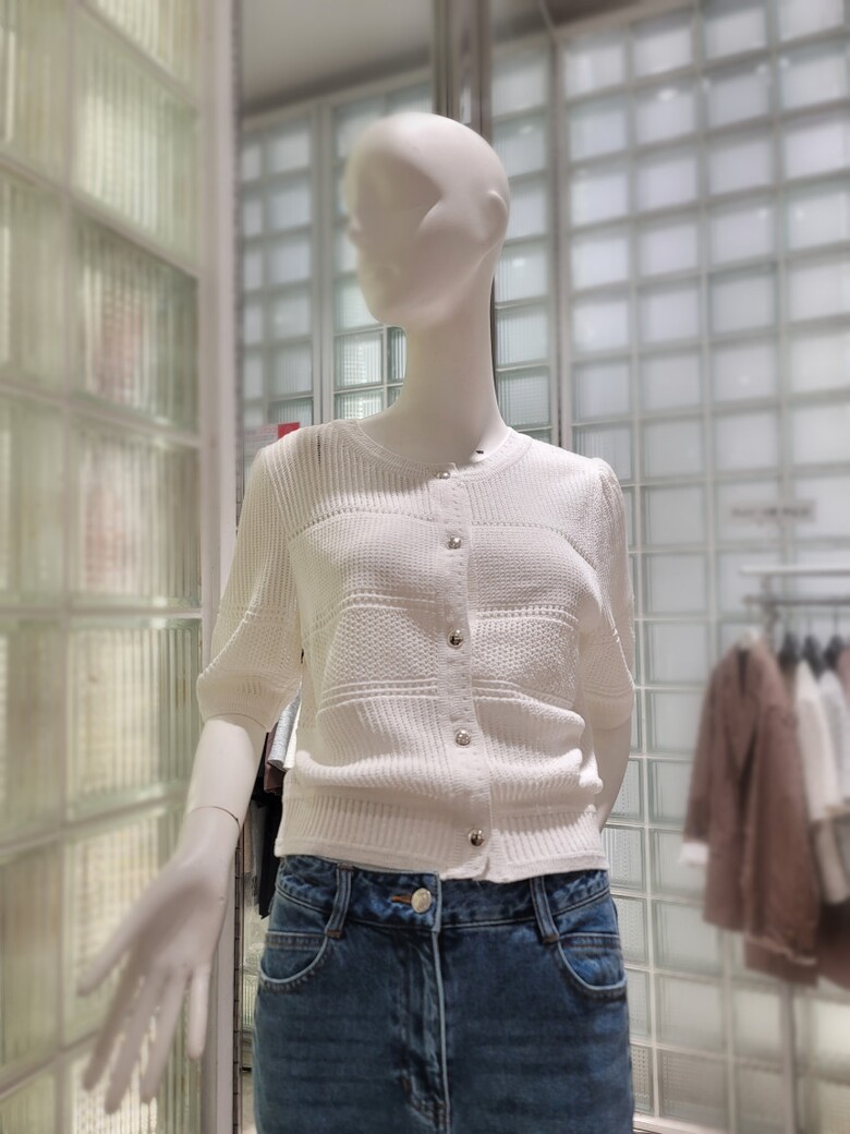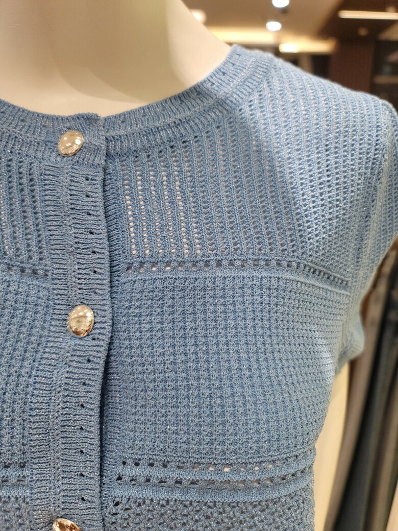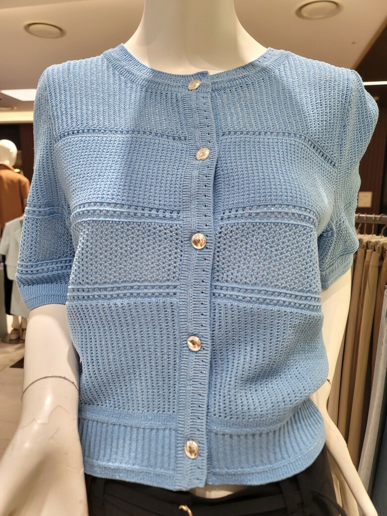 섬세한 짜임이 포인트인 반팔 가디건이에요