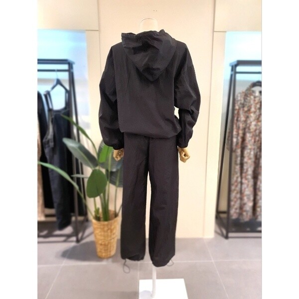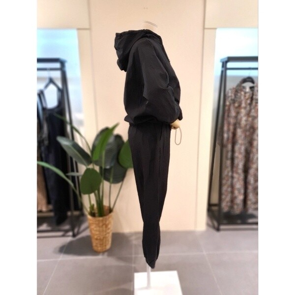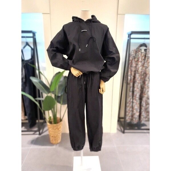 STP305BK_바스락 후드 조거팬츠 세트 블랙