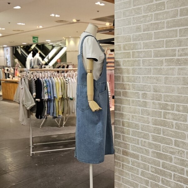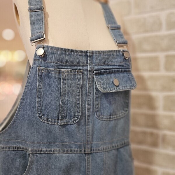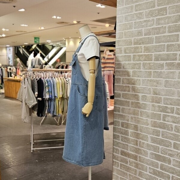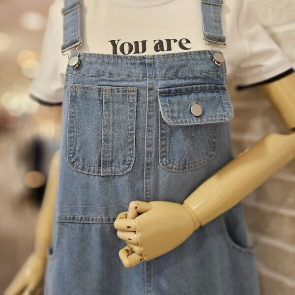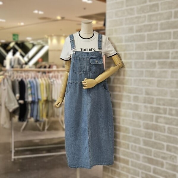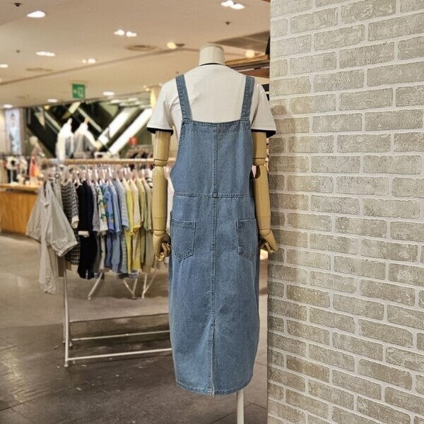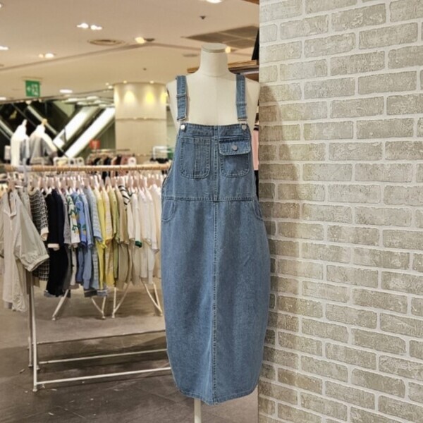 LC41E6DO001X_미디 데님 오버롤 원피스