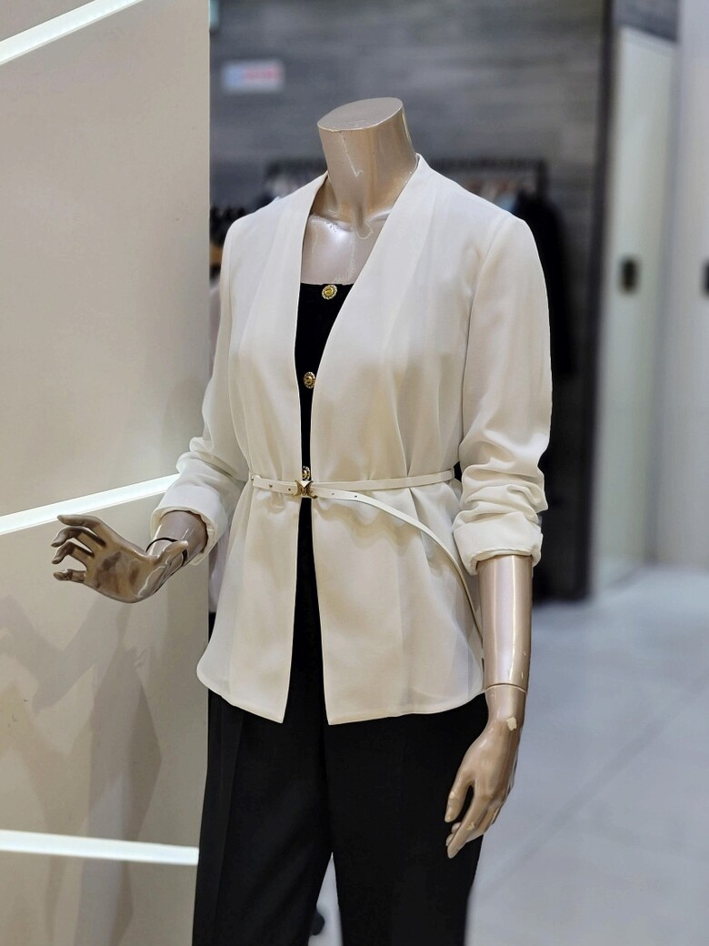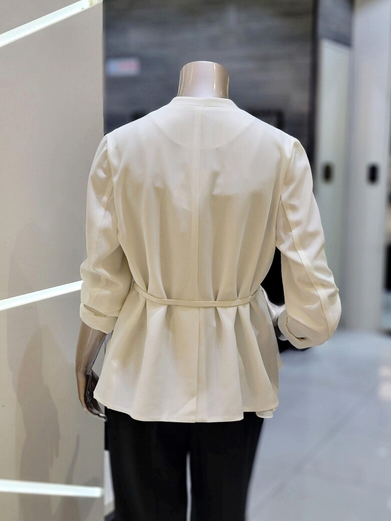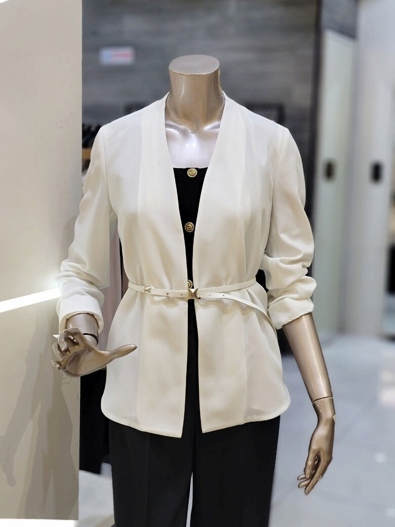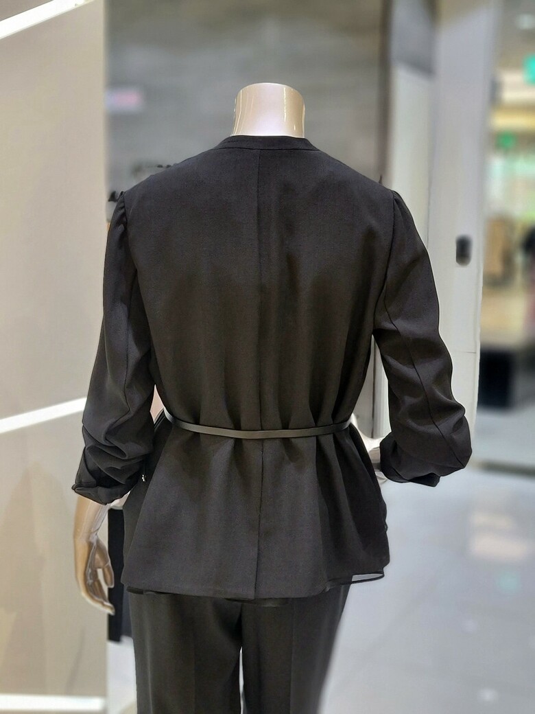 프런트 오픈형 디자인에 벨트 구성으로 포인트 클로징 가능한 재킷입니다.