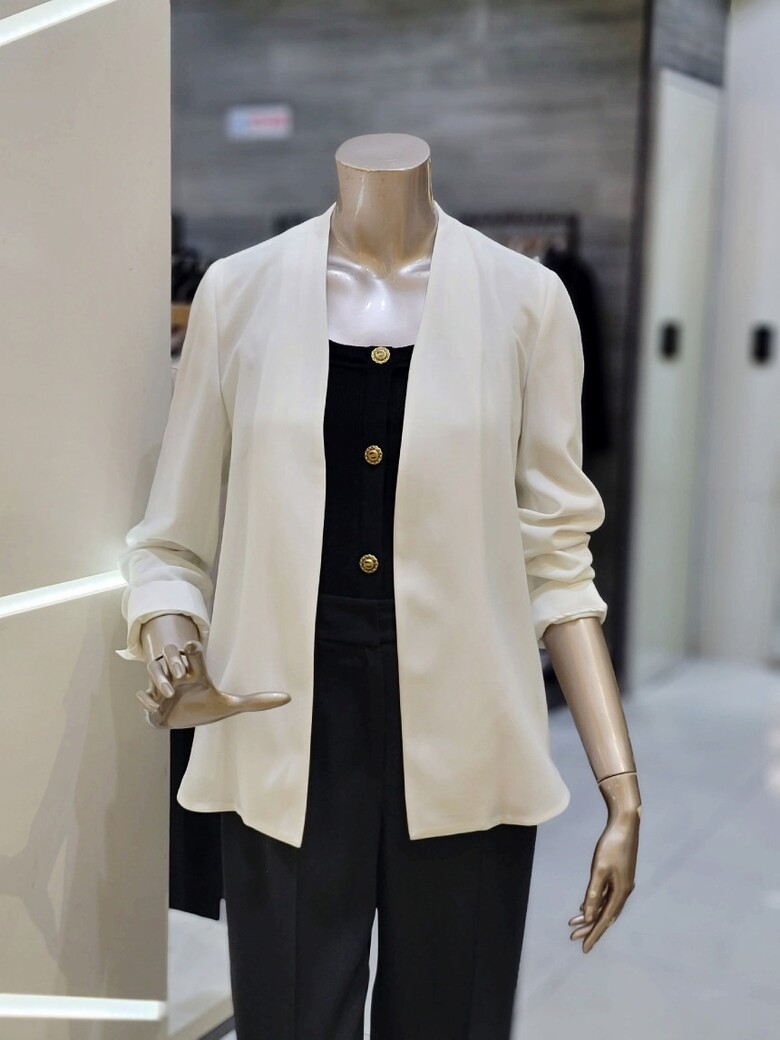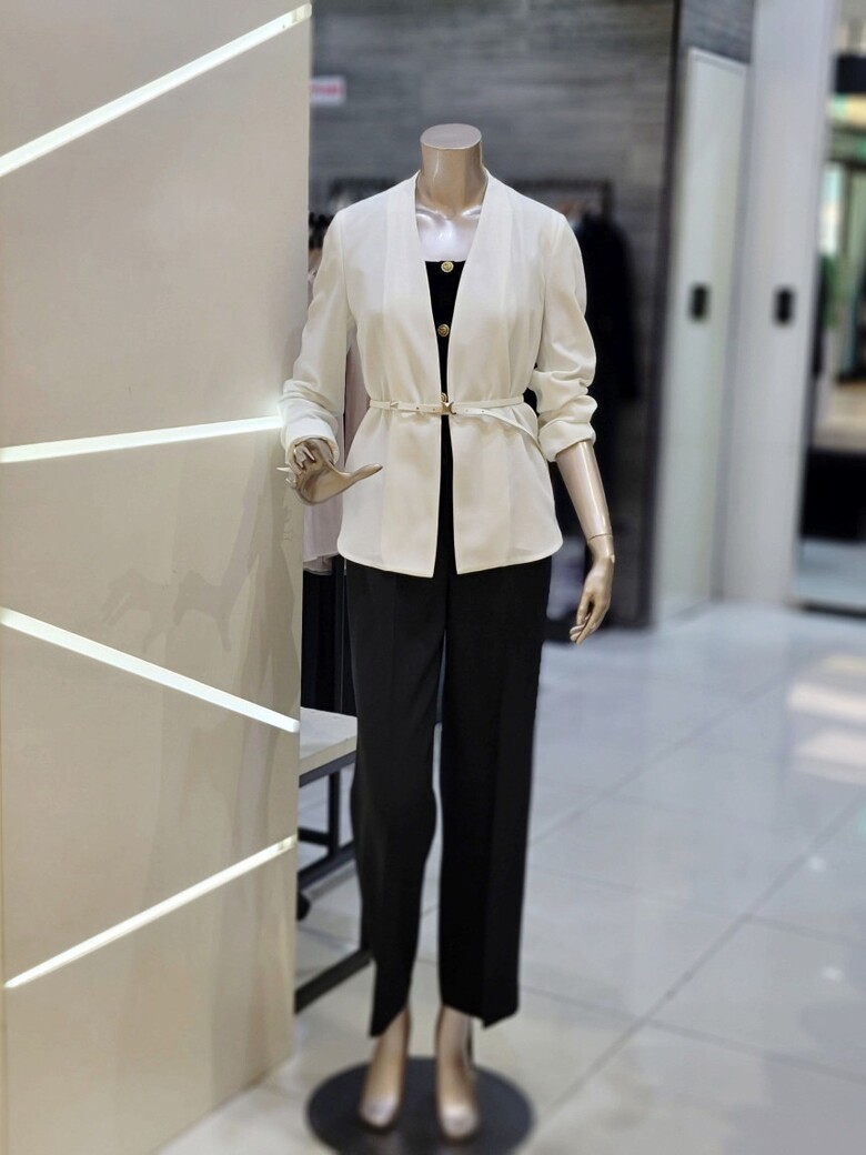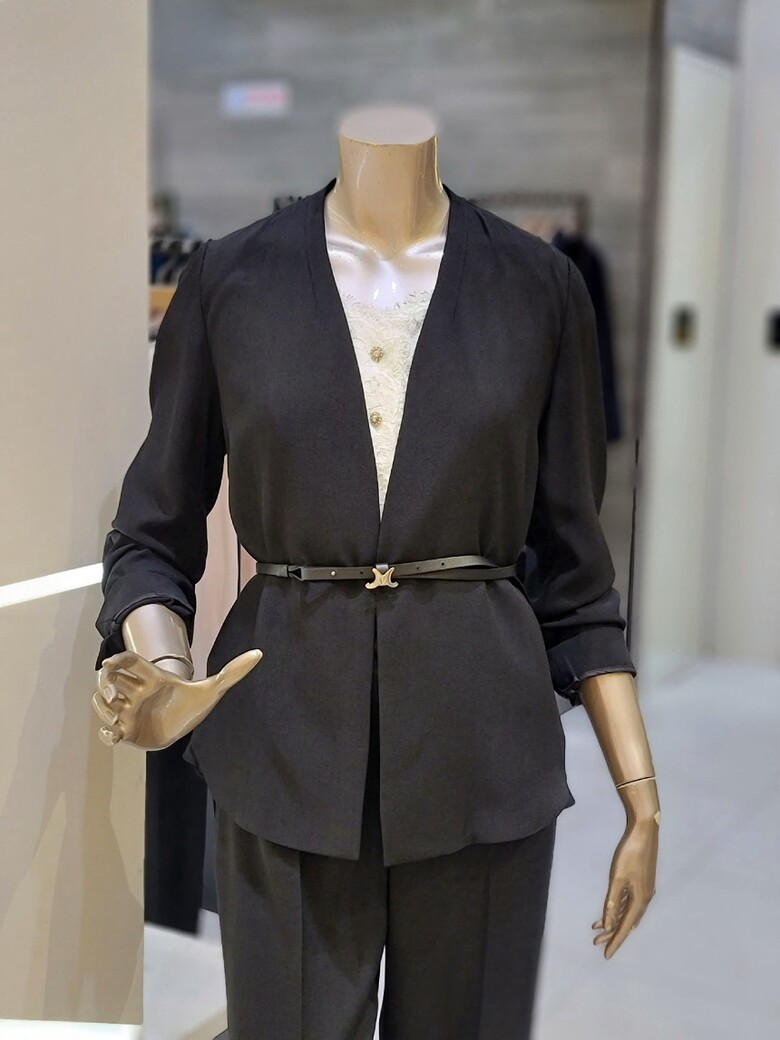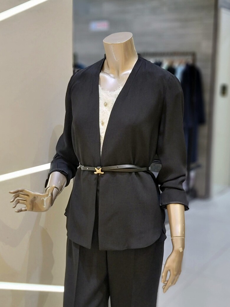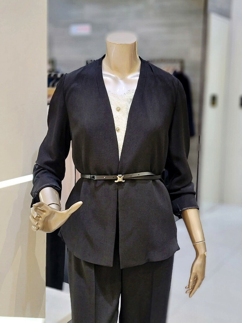 프런트 오픈형 디자인에 벨트 구성으로 포인트 클로징 가능한 재킷입니다.