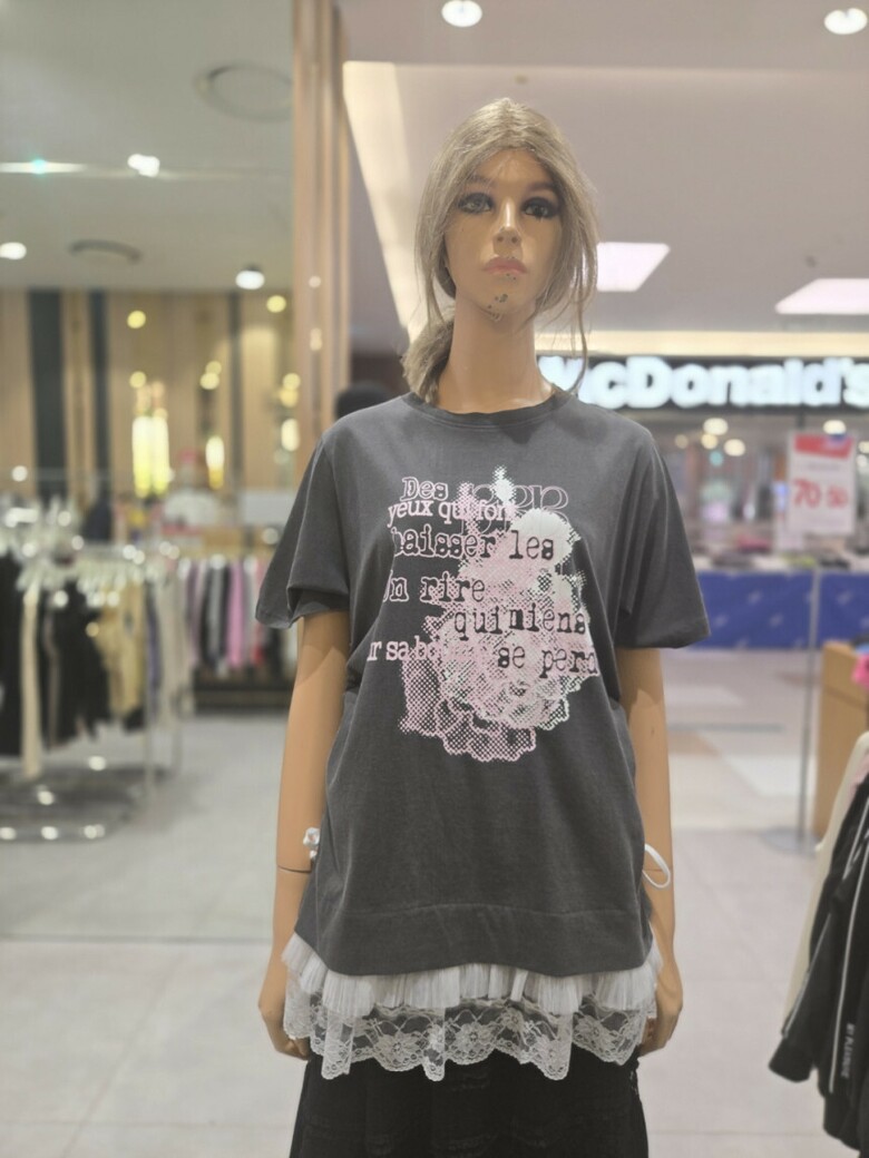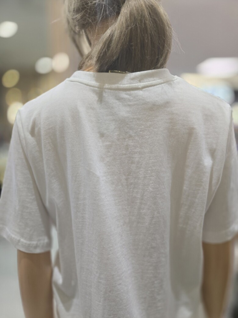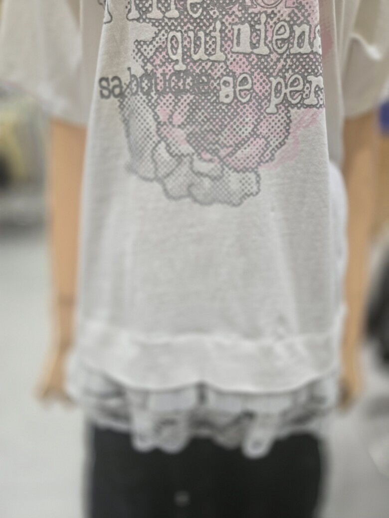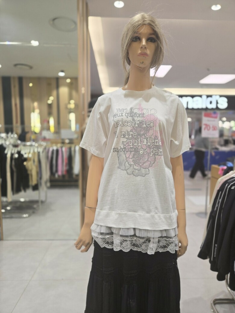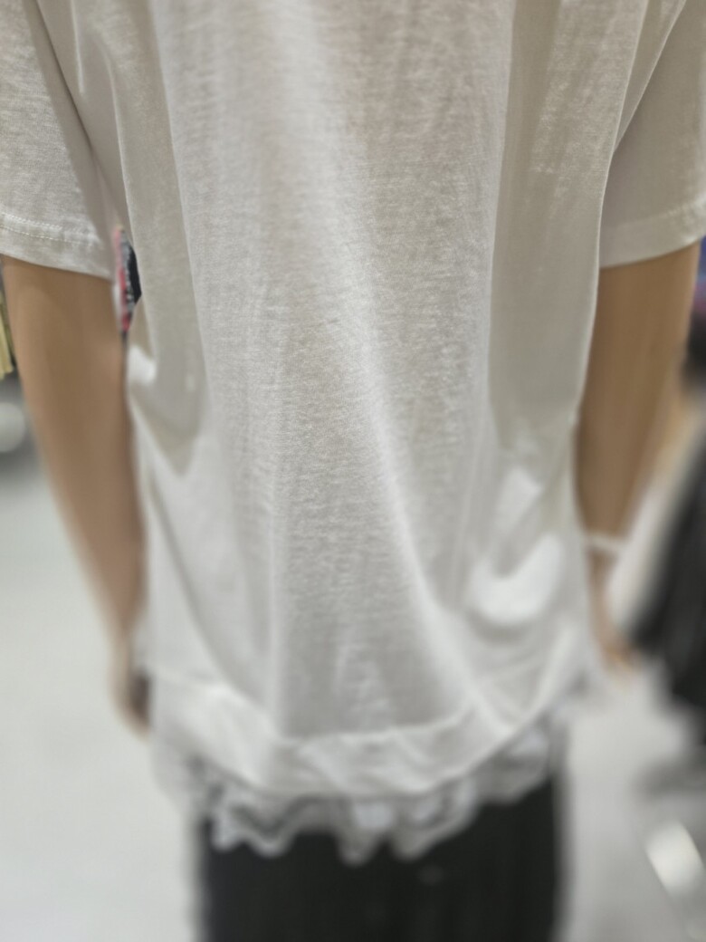 레이스 패치 루즈핏 롱 반팔 티셔츠 ER2OTH-56