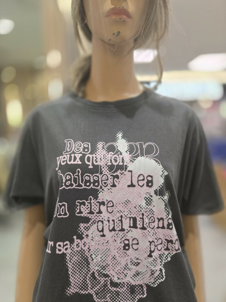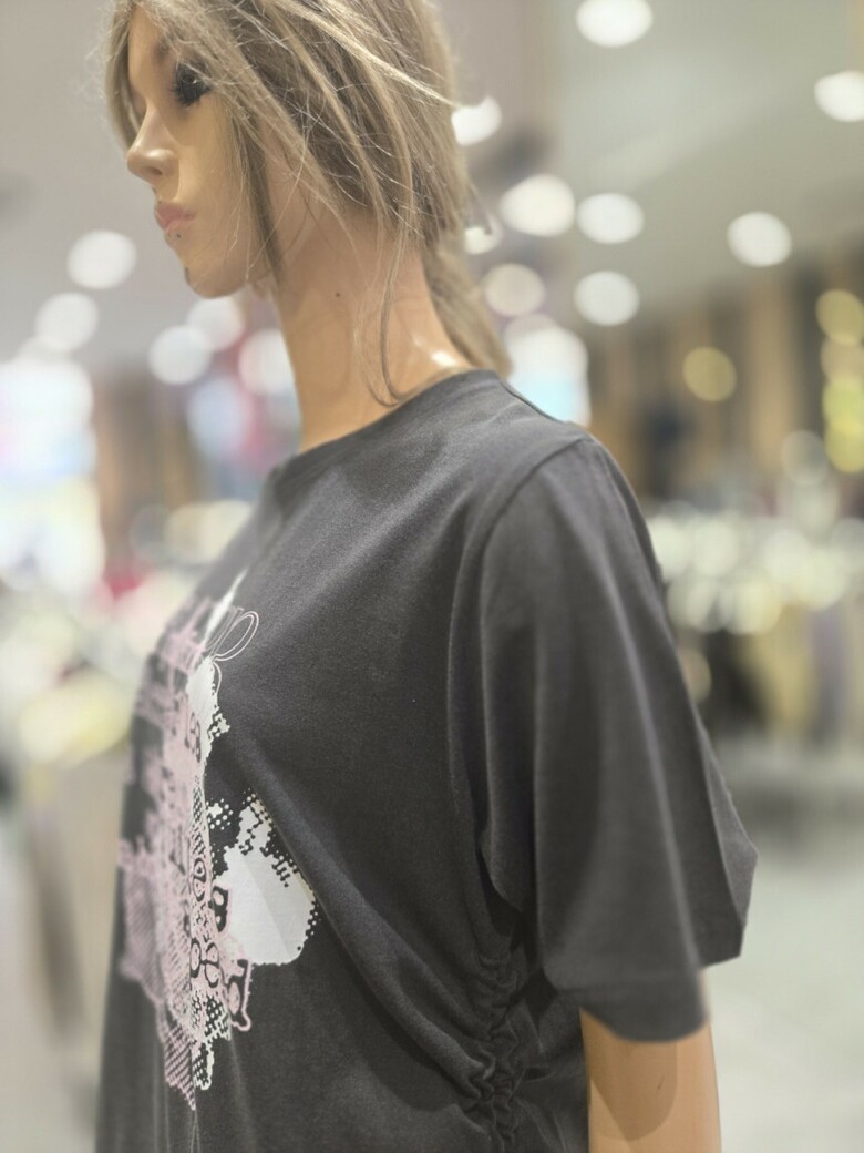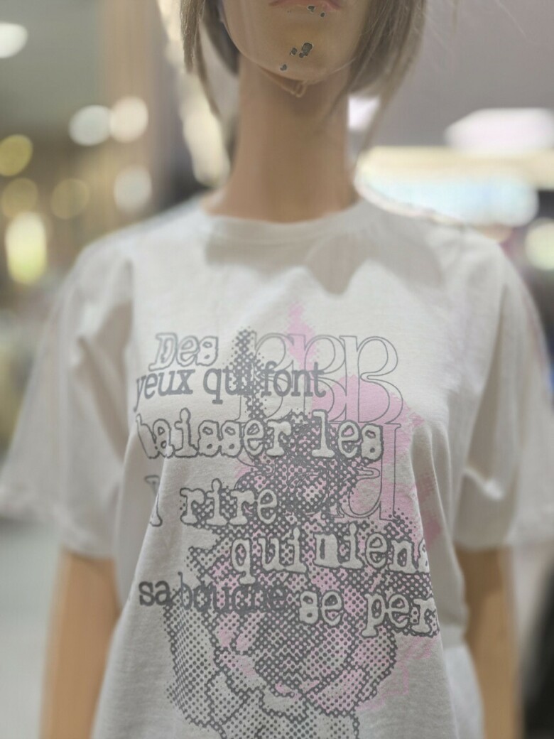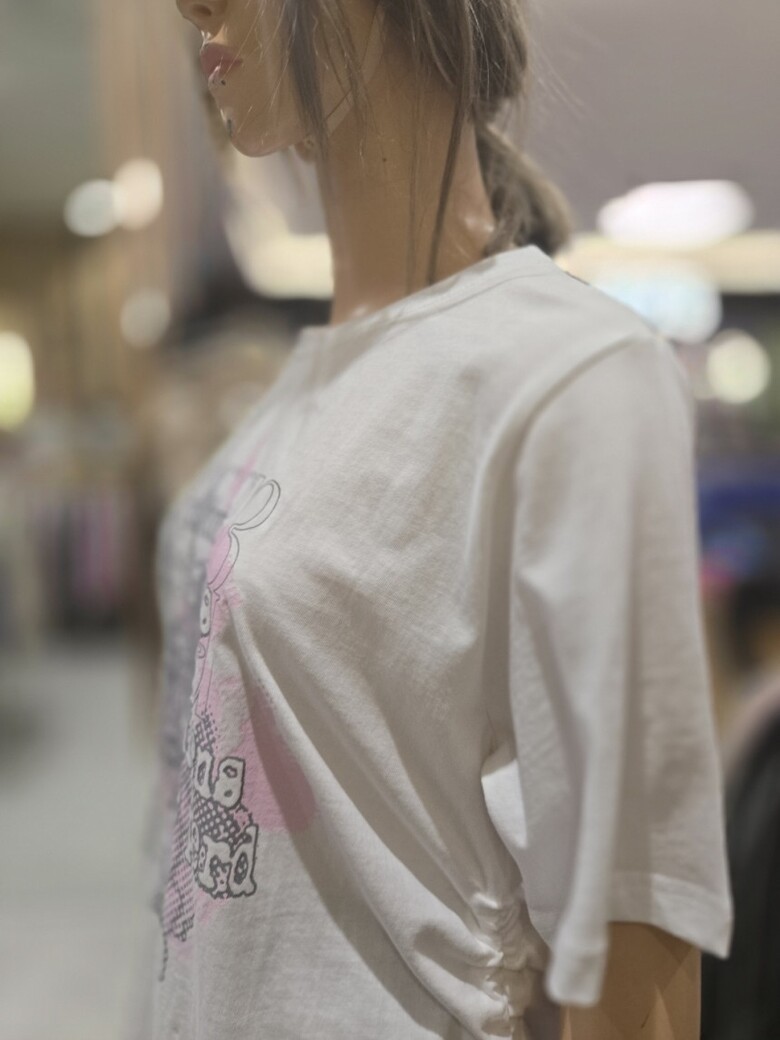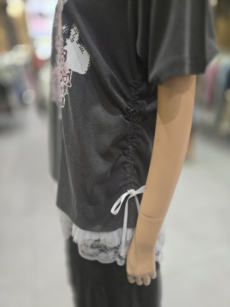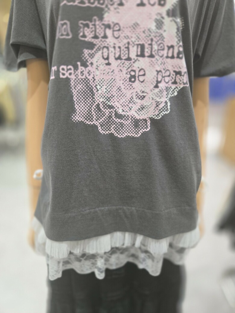 레이스 패치 루즈핏 롱 반팔 티셔츠 ER2OTH-56