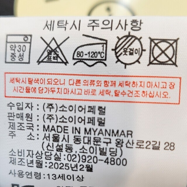 | 6. 세탁방법 및 취급시 주의사항 | 상품상세참조 |