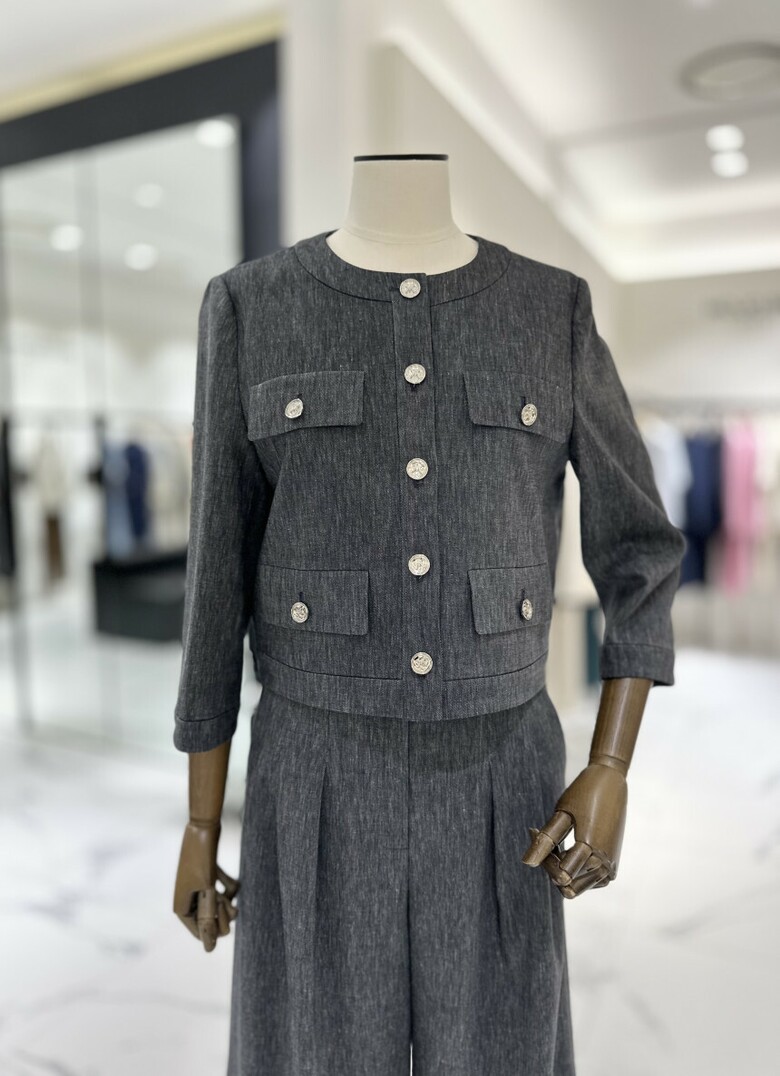 모조에스핀 라운드넥 린넨 혼방 크롭재킷 S252MSF122