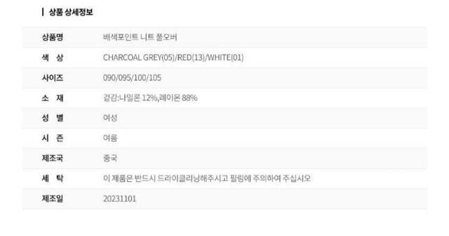 | 6. 세탁방법 및 취급시 주의사항 | 상품상세참조 |