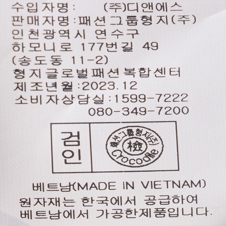 | 1. 제품 소재 (섬유의 조성 또는 혼용률을 백분율로 표시, 기능성인 경우 성적서 또는 허가서) | 상품상세참조 |