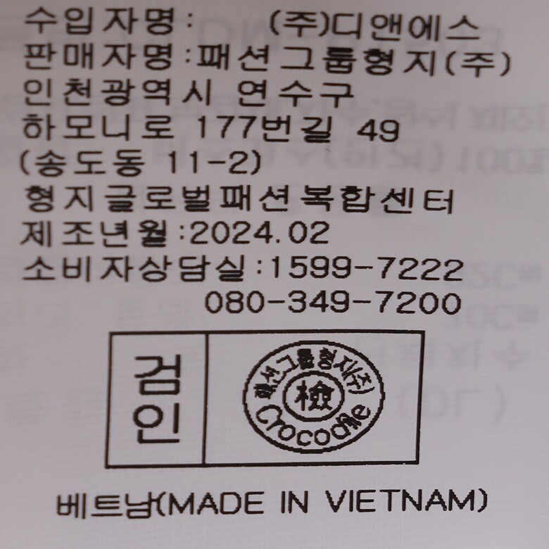 | 1. 제품 소재 (섬유의 조성 또는 혼용률을 백분율로 표시, 기능성인 경우 성적서 또는 허가서) | 상품상세참조 |