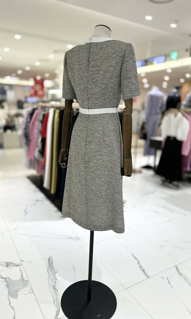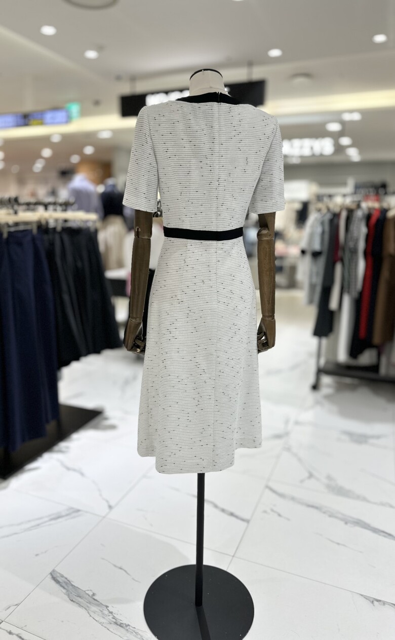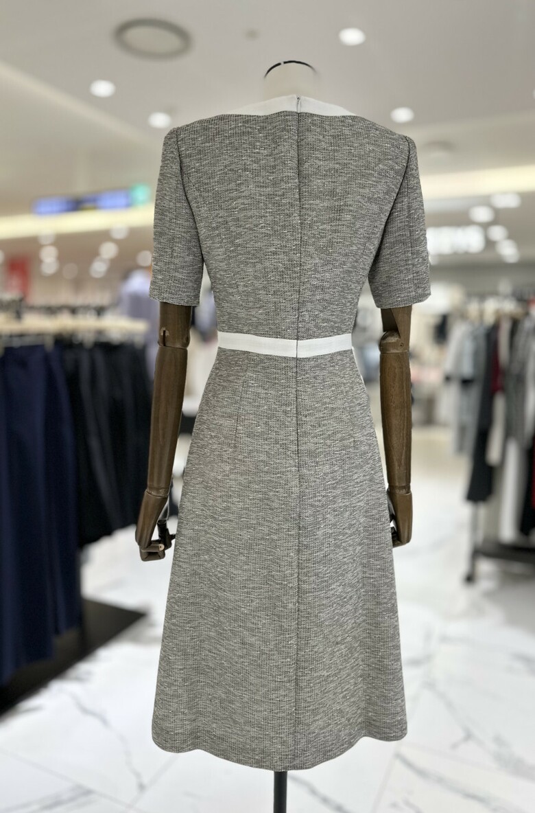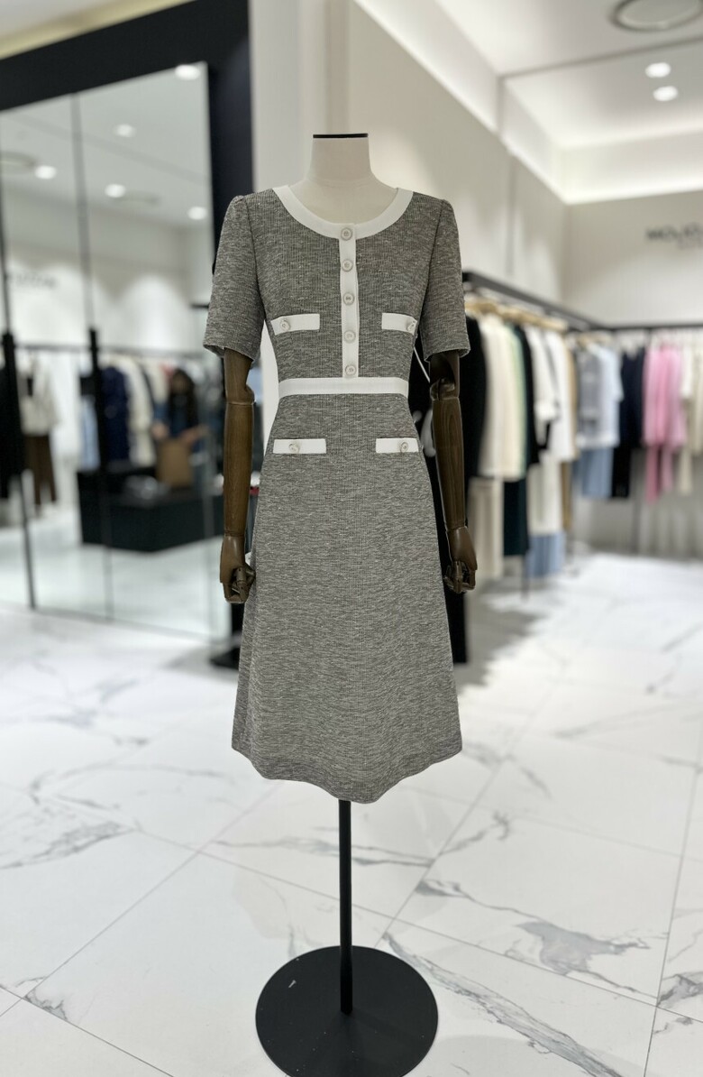 모조에스핀 배색 라인 팬시 소재 원피스 [J242MSE030]