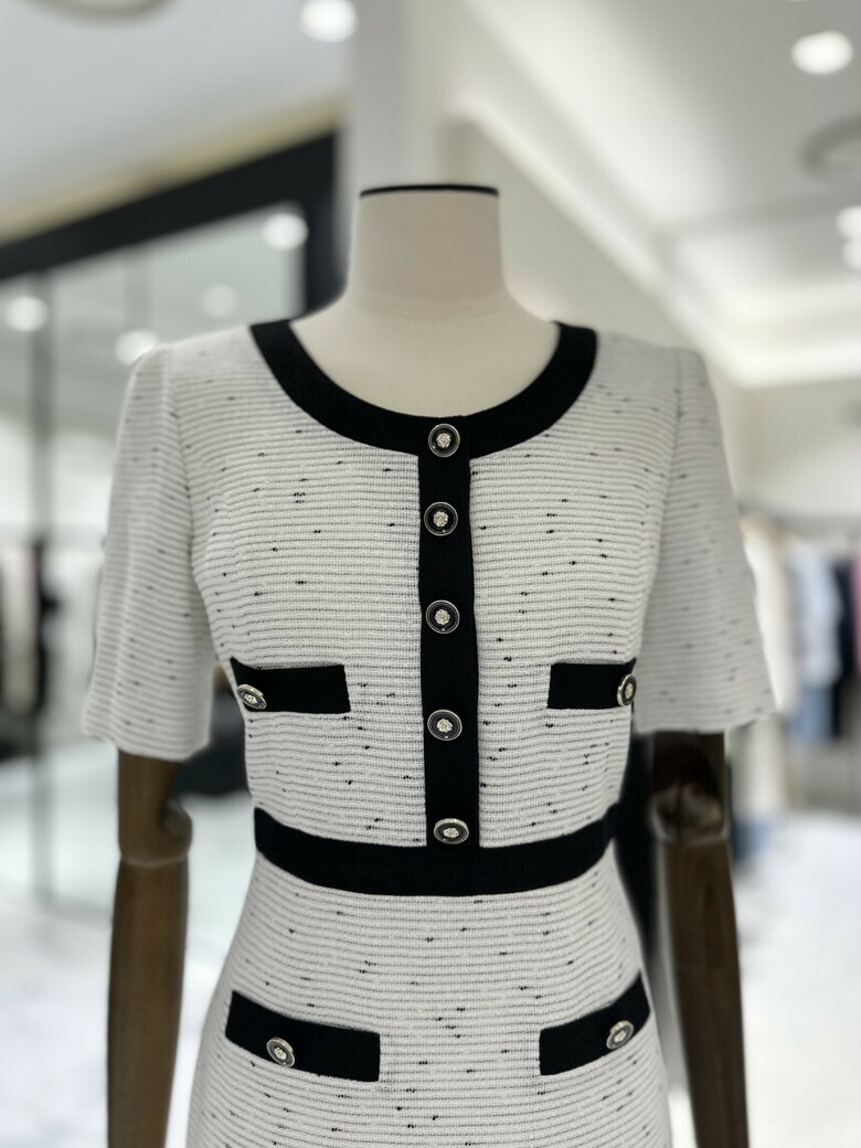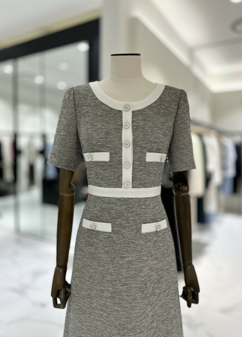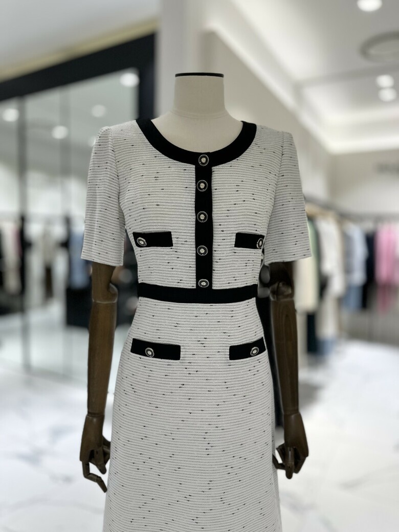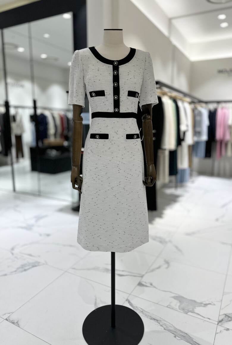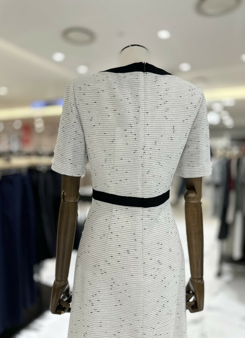 모조에스핀 배색 라인 팬시 소재 원피스 [J242MSE030]