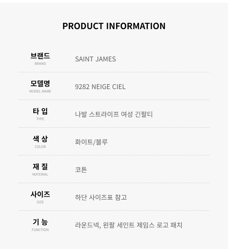 [명품] 세인트제임스 9282 NEIGE CIEL 나발 스트라이프 여성 긴팔티