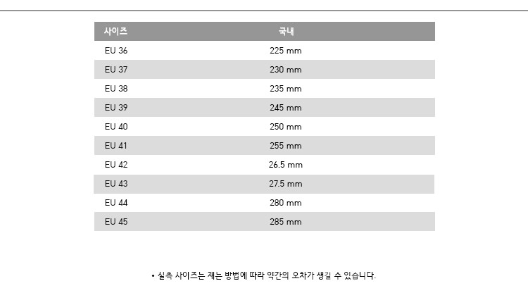 | 1. 제품 소재 (운동화인 경우에는 겉감, 안감을 구분하여 표시) | 상세페이지 참조 |