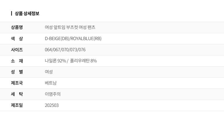| 1. 제품 소재 (섬유의 조성 또는 혼용률을 백분율로 표시, 기능성인 경우 성적서 또는 허가서) | 나일론 92% / 폴리우레탄 8% |