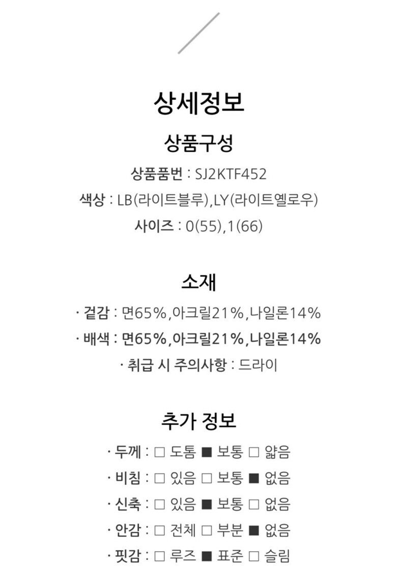 | 1. 제품 소재 (섬유의 조성 또는 혼용률을 백분율로 표시, 기능성인 경우 성적서 또는 허가서) | 상품상세참조 |