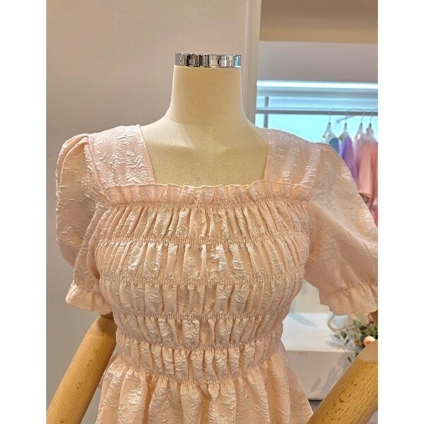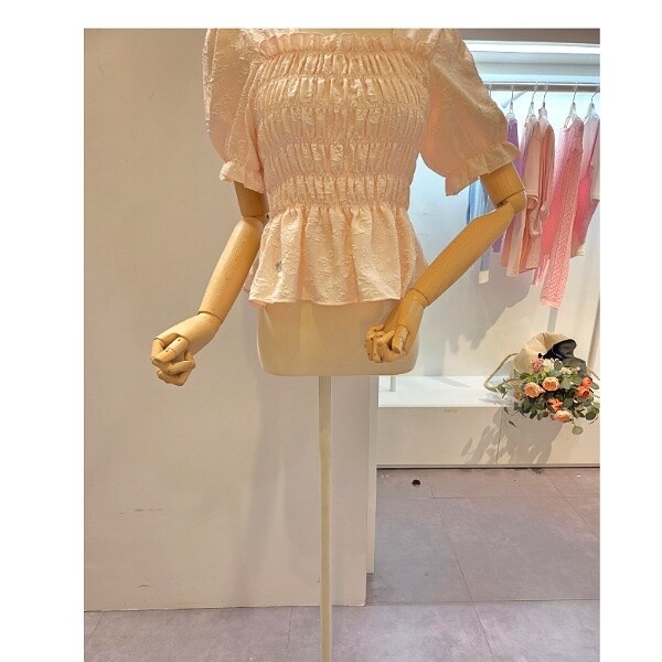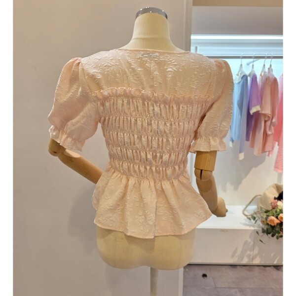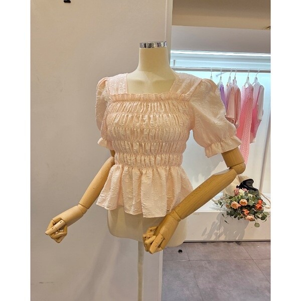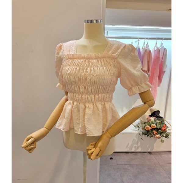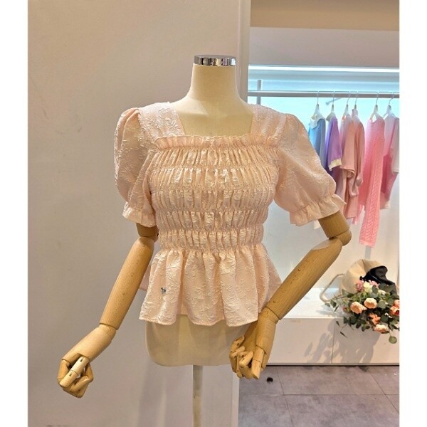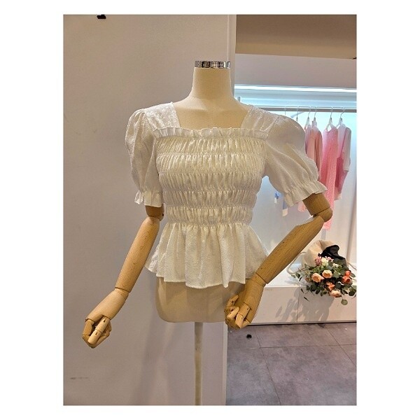 CP4WBL23_스퀘어넥 스모크 셔링 블라우스