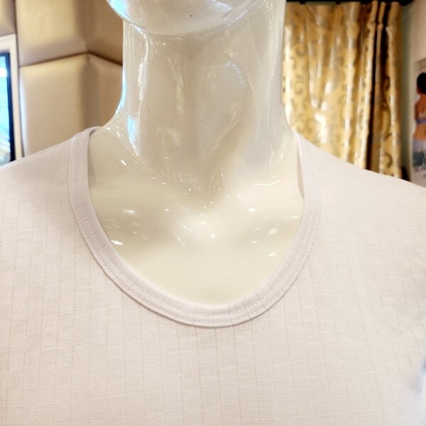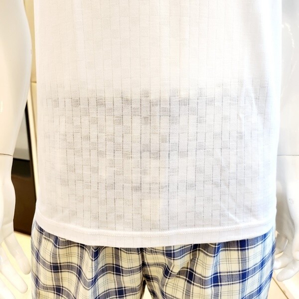 면과 뱀부가 함께 들어있는 소재로 표면에 은은한 조직감이 있어 몸에 붙지 않게 착용 가능하며 메쉬 소재로 통풍이 잘 되어 시원하게 입을 수 있습니다.?