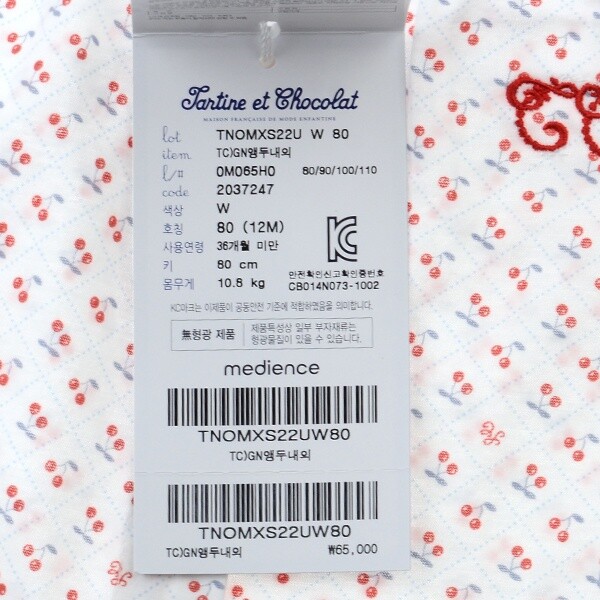 품명 및 모델명 : 백일돌실내복)앵두내의