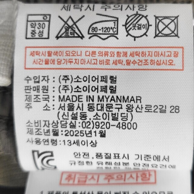 | 1. 제품 소재 (섬유의 조성 또는 혼용률을 백분율로 표시, 기능성인 경우 성적서 또는 허가서) | 상품상세참조 |