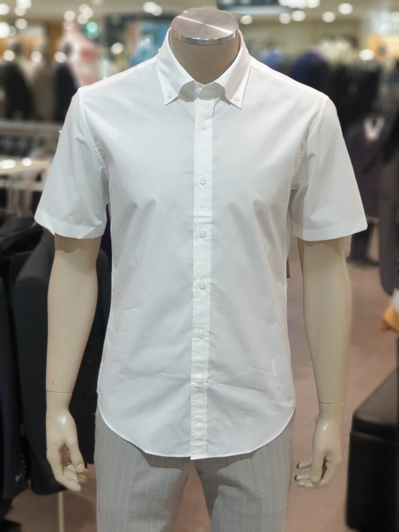 BON 25SS 화이트 버튼 다운 면 혼방 반팔 슬림 남방셔츠BNEMBA661WH