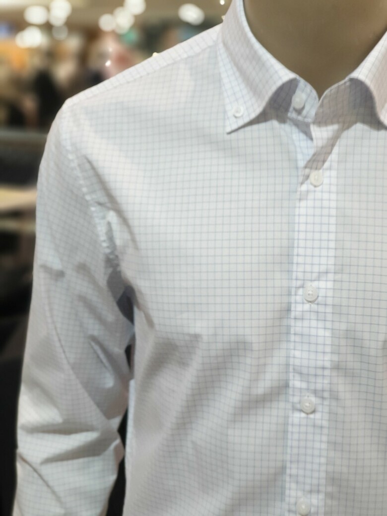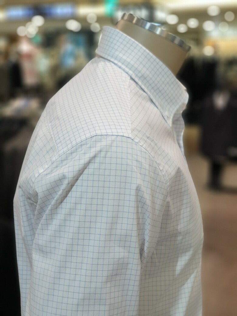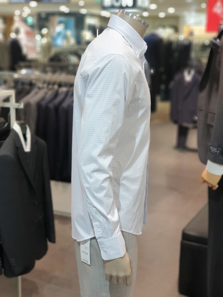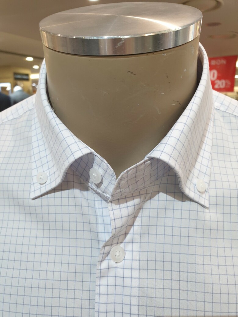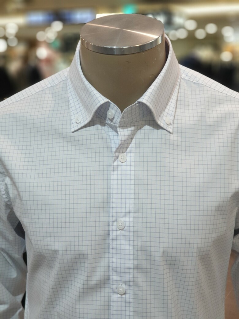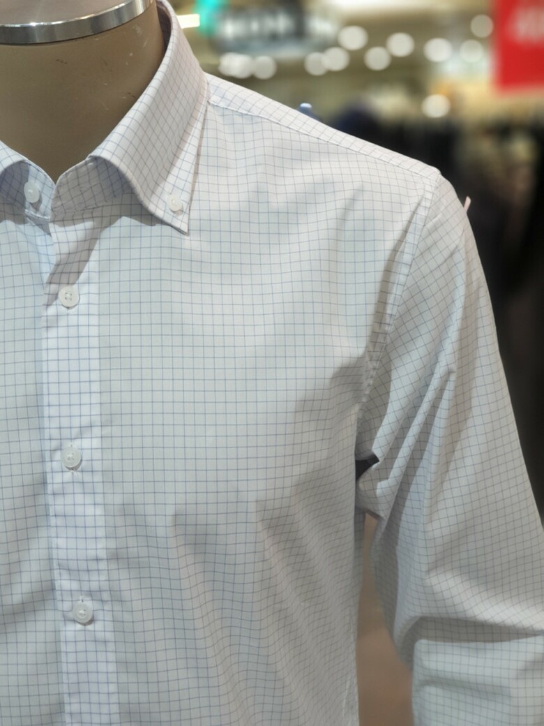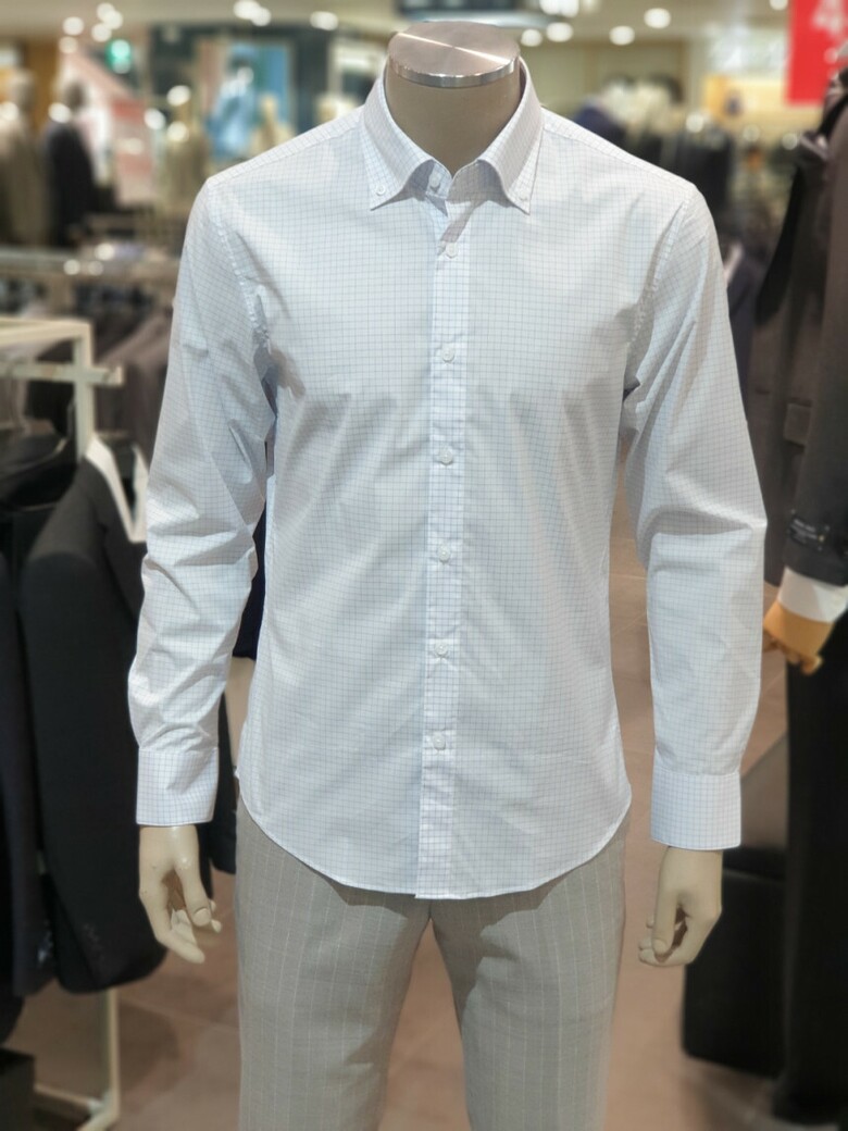 BON 25SS 블루 윈도우 체크 버튼 다운 면 혼방 스트레치 슬림 남방셔츠BNESBA610BL