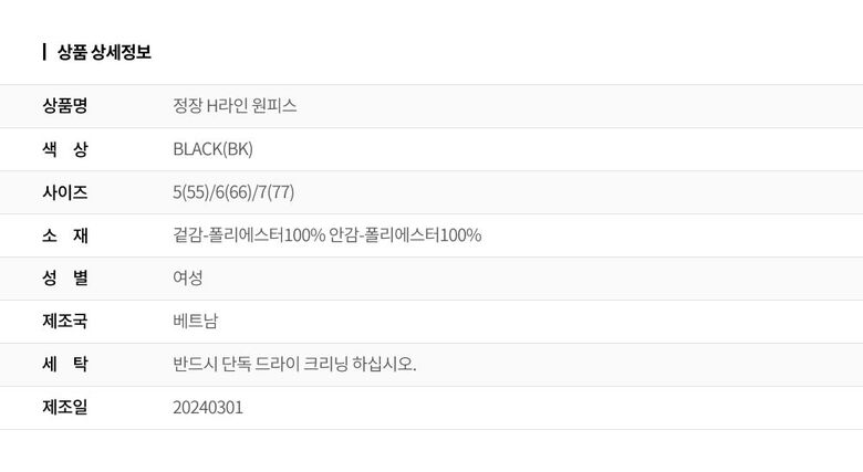 | 6. 세탁방법 및 취급시 주의사항 | 상세페이지 참조 |