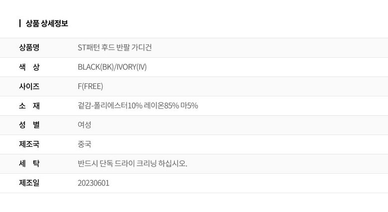 | 6. 세탁방법 및 취급시 주의사항 | 상세페이지 참조 |