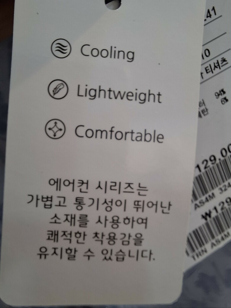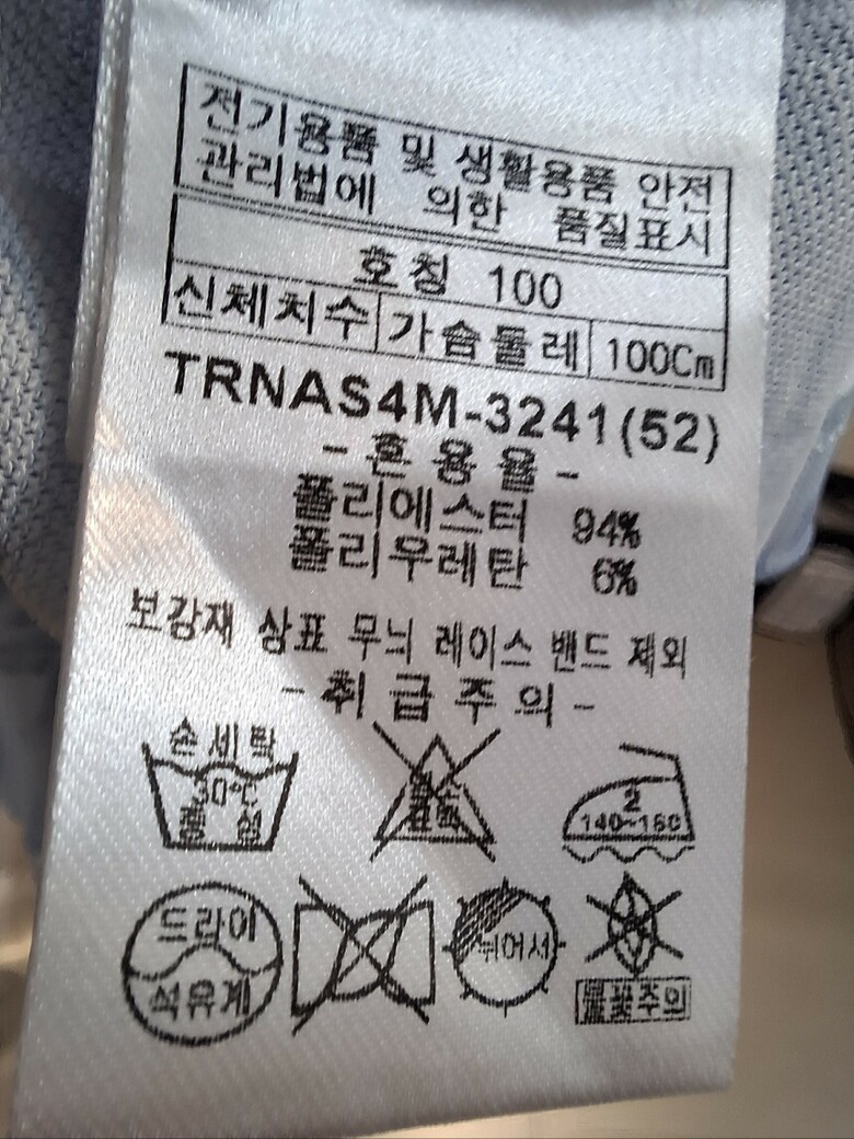 | 1. 제품 소재 (섬유의 조성 또는 혼용률을 백분율로 표시, 기능성인 경우 성적서 또는 허가서) | 폴리에스테르 94%, 폴리우레탄 6% |