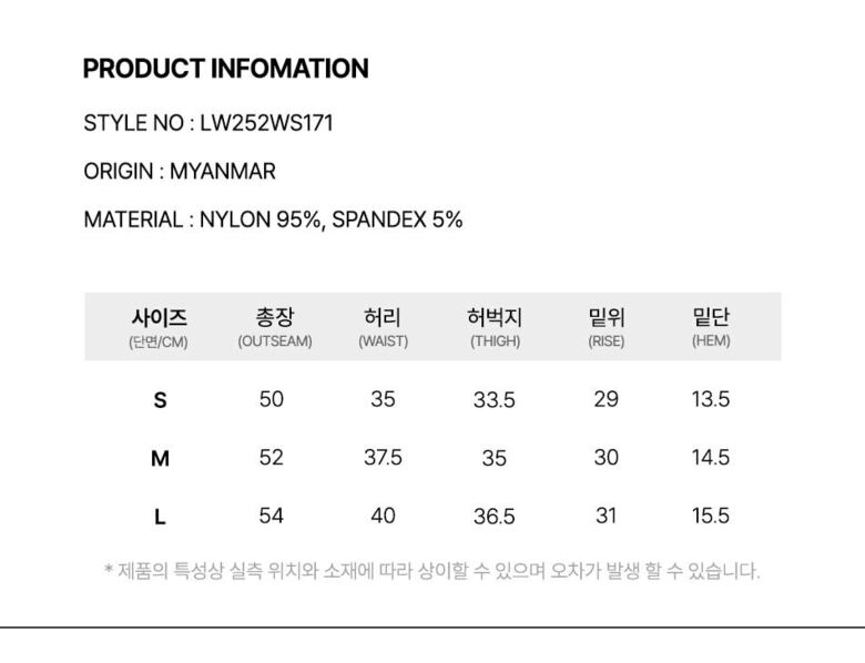 | 1. 제품 소재 (섬유의 조성 또는 혼용률을 백분율로 표시, 기능성인 경우 성적서 또는 허가서) | 겉감:나일론 95%, 폴리우레탄 5% |