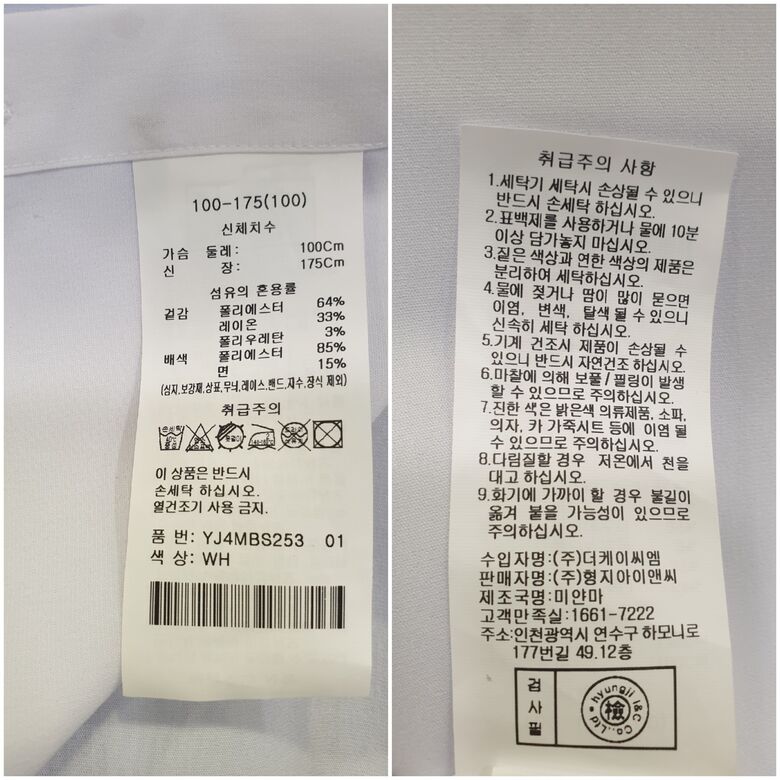 | 6. 세탁방법 및 취급시 주의사항 | 상품상세참조 |