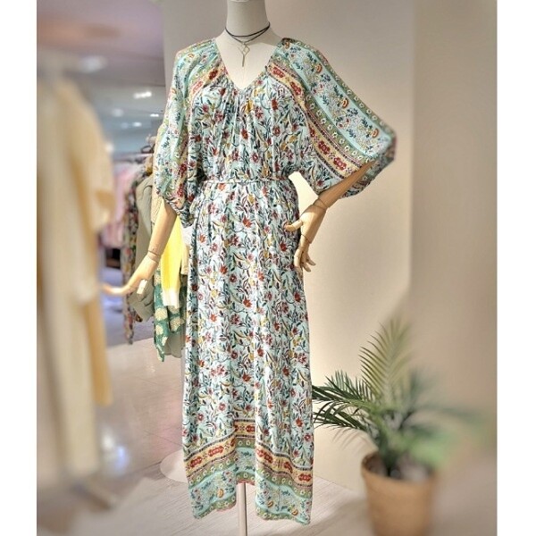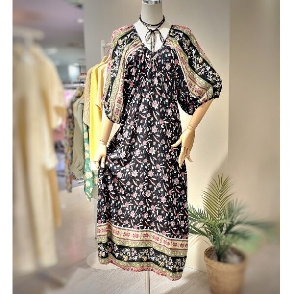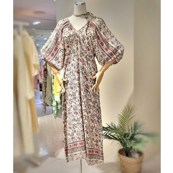 앞뒤 브이넥 오버 숄더형 원피스 찰랑하고 매끈한 터치감 가볍고 시원한 소재