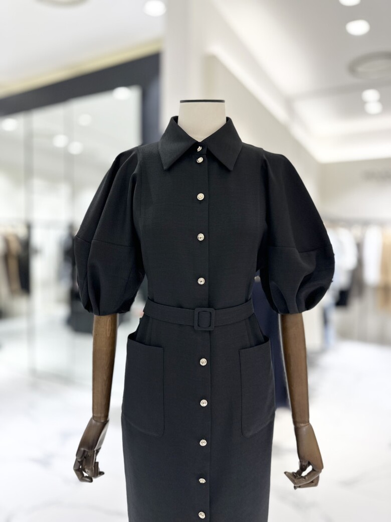 모조에스핀 퍼프소매 벨티드 원피스 S252MSE022
