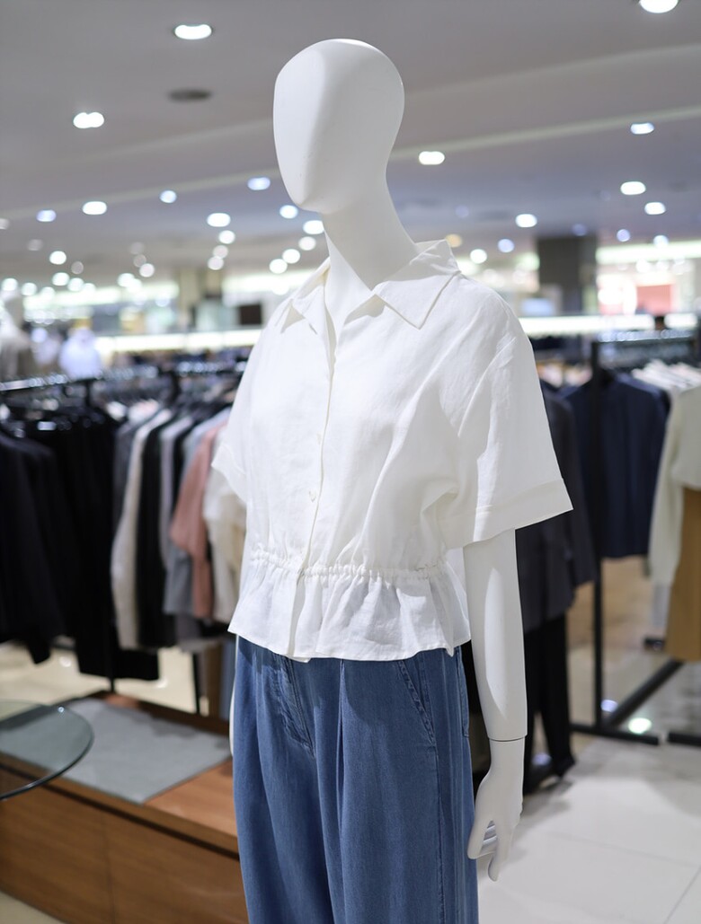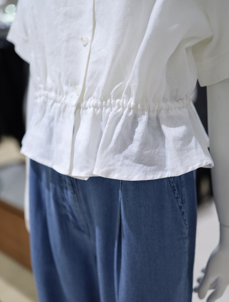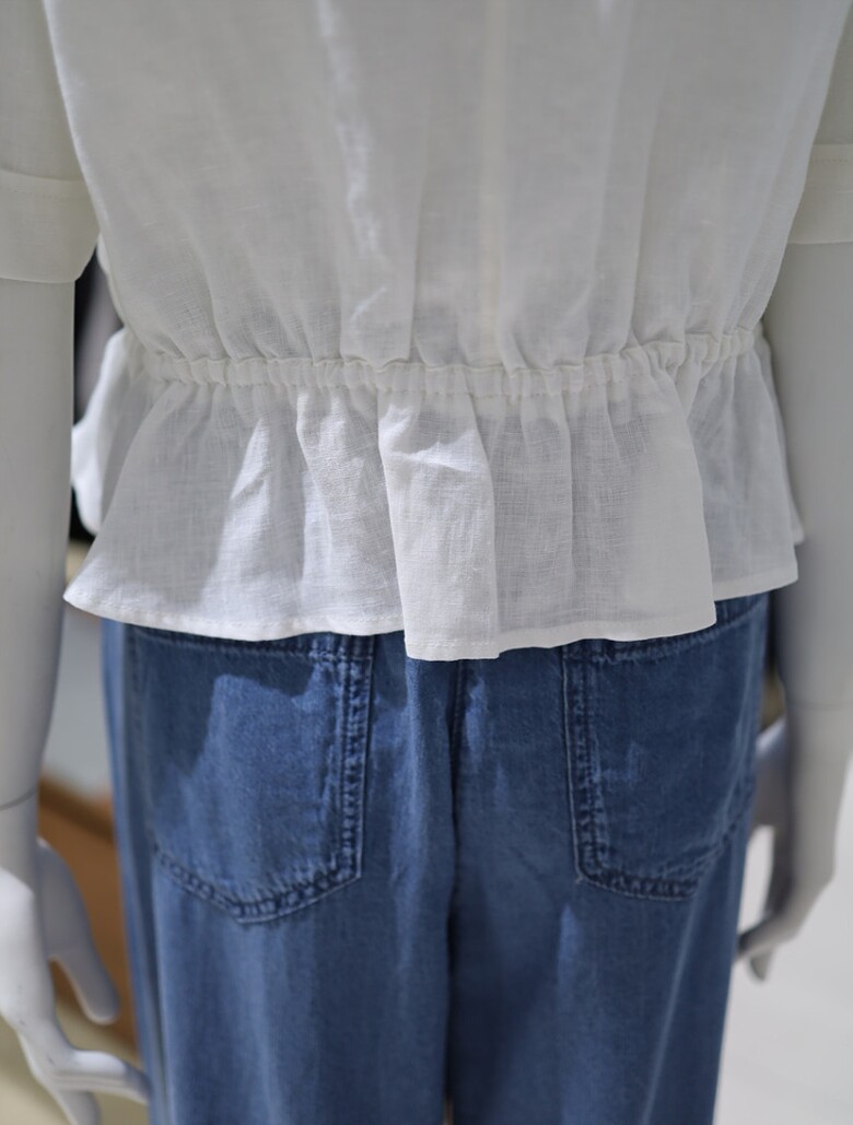 쉬즈미스 린넨 크롭 밴딩 블라우스 SWWBLO22030