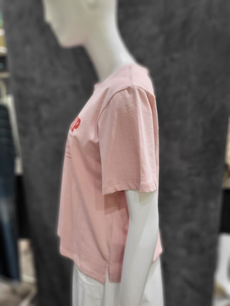 부드럽고 편안한 코튼 100% 소재로 제작된 하프 슬리브 티셔츠입니다.