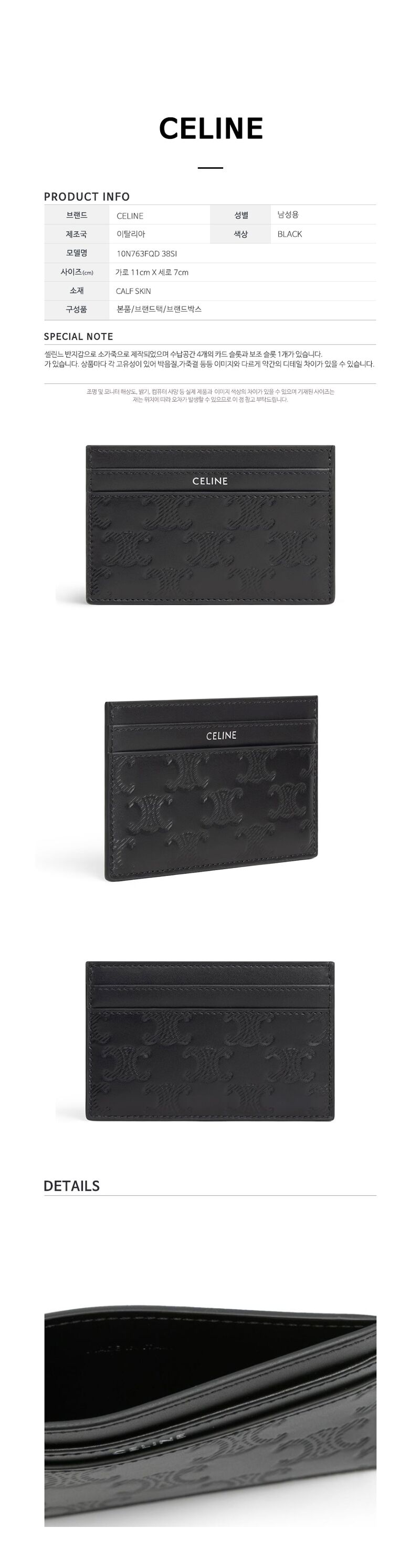 - #리본즈코리아 #10N763FQD38SI #[명품] #25SS #셀린느 #남성 #트리옹프 #엠보싱 #퀄팅 #카드 #지갑 #블랙 #10N763FQD #38SI #카드/명함지갑 #카드지갑홀더