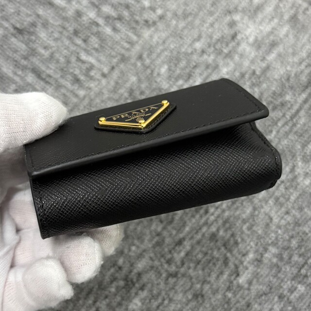 [명품] 25SS 프라다 삼각 로고 사피아노 반지갑 / 블랙 1MH042 QHH F0002