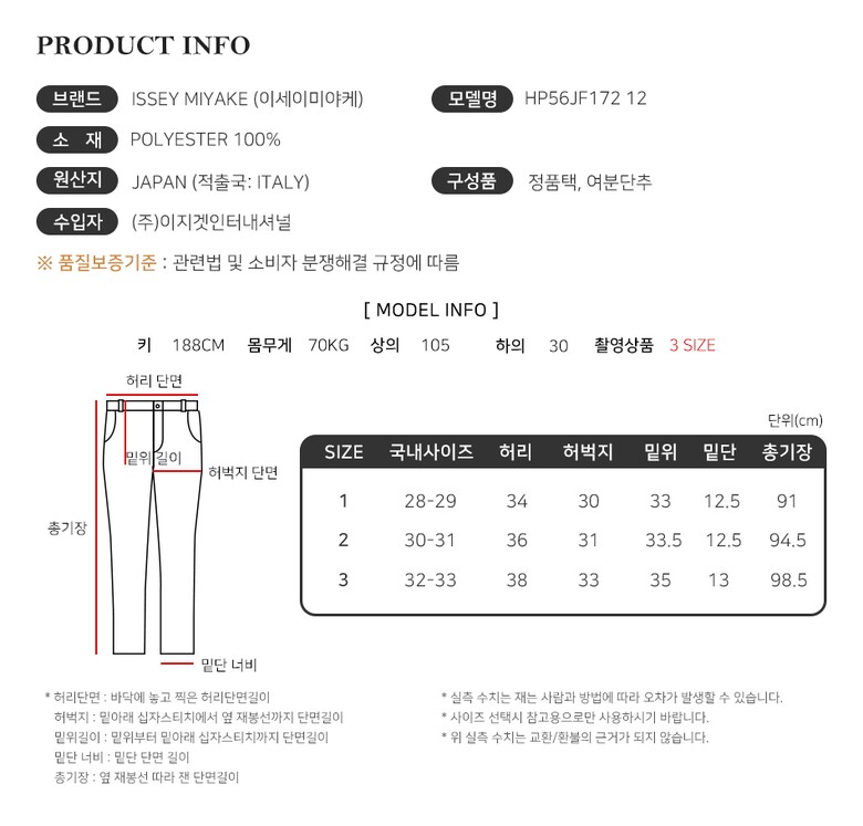 | 1. 제품 소재 (섬유의 조성 또는 혼용률을 백분율로 표시, 기능성인 경우 성적서 또는 허가서) | 상세페이지 참조 |