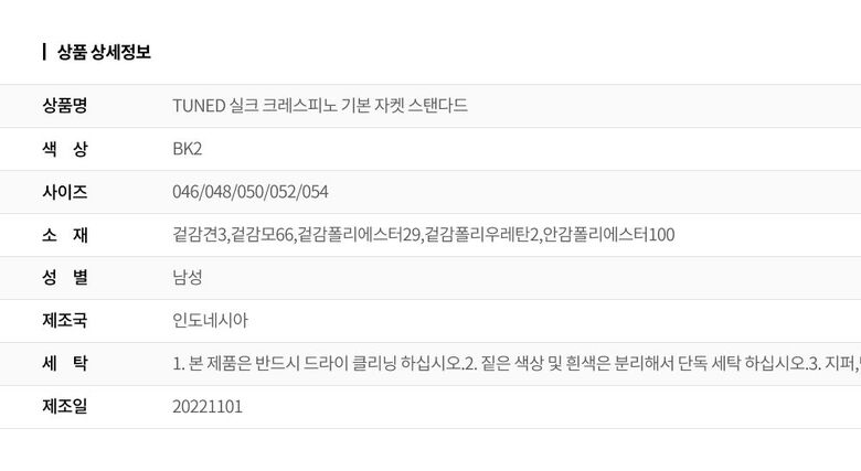 | 6. 세탁방법 및 취급시 주의사항 | 상세설명 참조 |