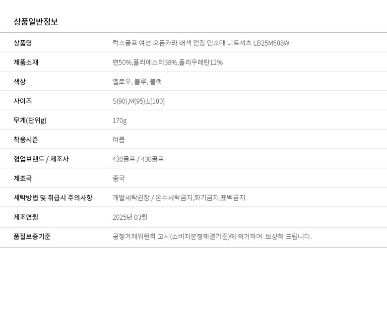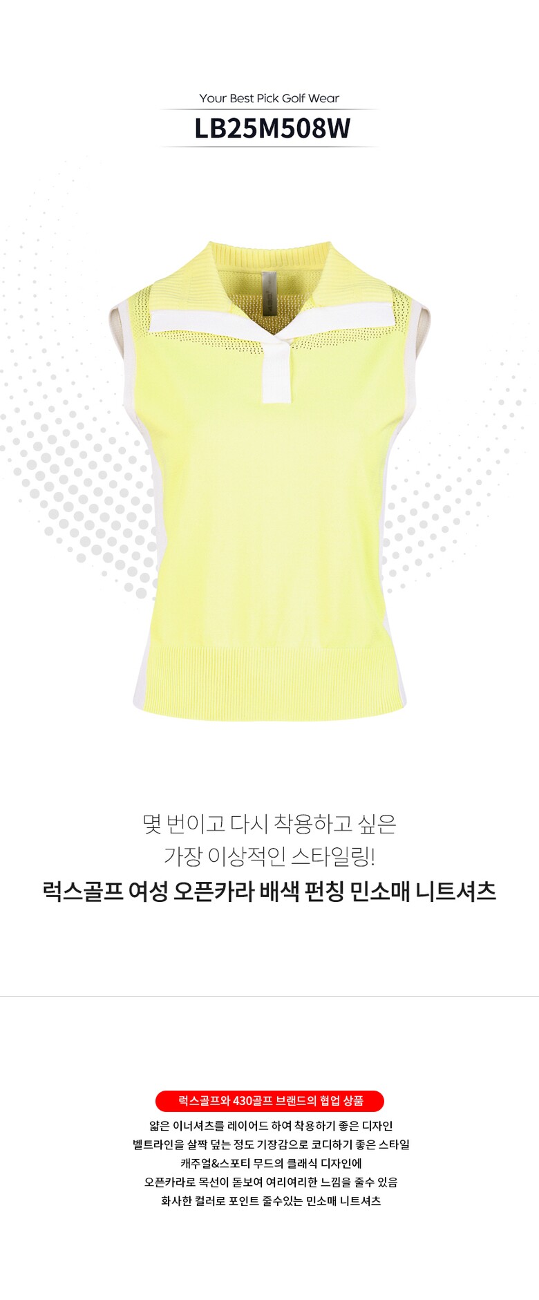 골피아 LB25M508W 여성 오픈카라 배색 펀칭 민소매 니트셔츠