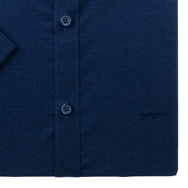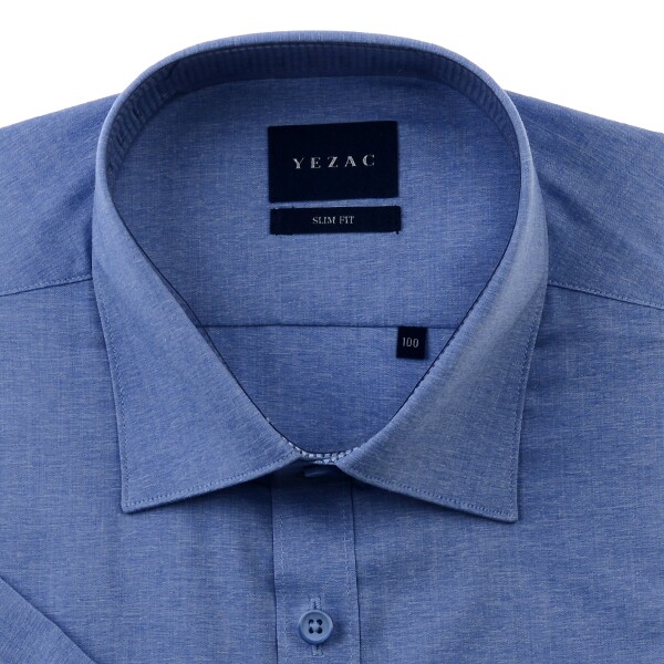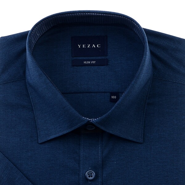 구김이 적고? 신축성이 있어 활동하기 편한 카라 안쪽에 배색을 넣은?코튼 혼방 카치온 스트레치 솔리드 패턴의 슬림핏 반소매