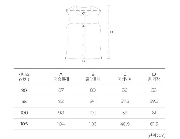 사이즈 단위는 cm이며,재는 위치에 따라 1~3cm사이즈 오차가