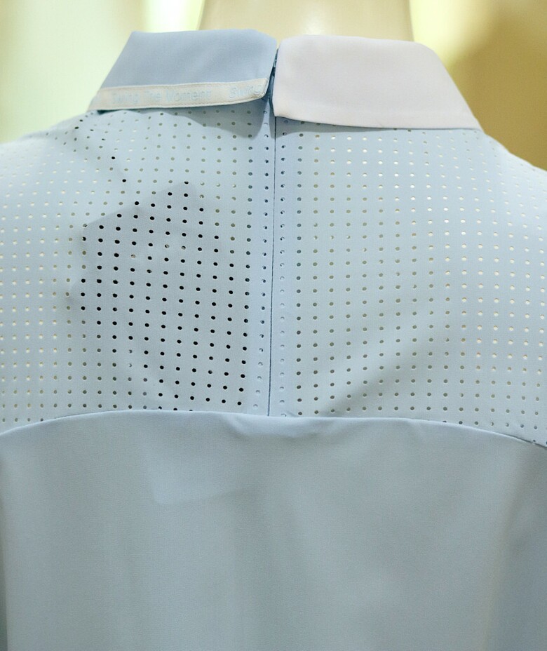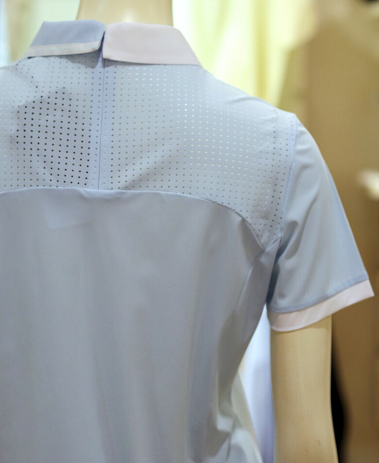유로 져지 소재의 티셔츠로 기능성 소재와 펀칭 배색으로