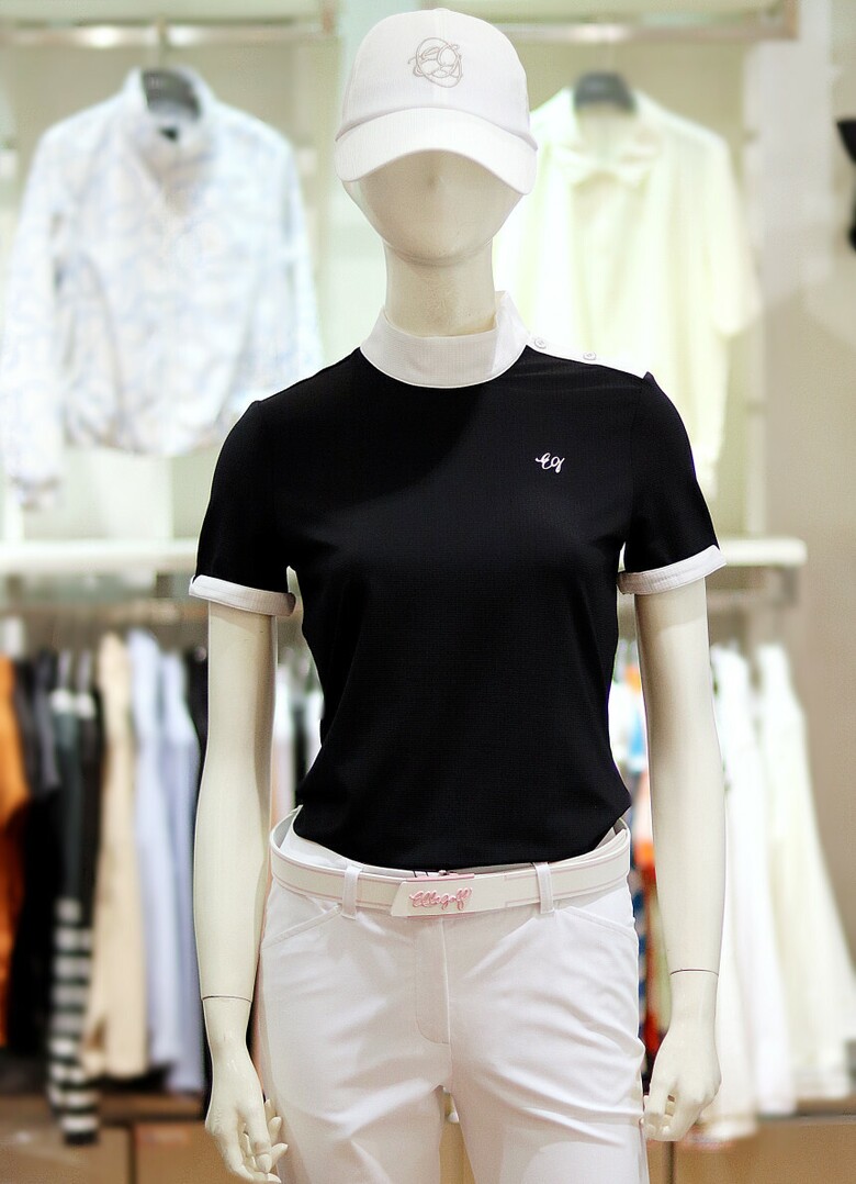 엘르골프 S/S 여성 사선스냅 모크넥 반팔 티셔츠 6J-45403-199