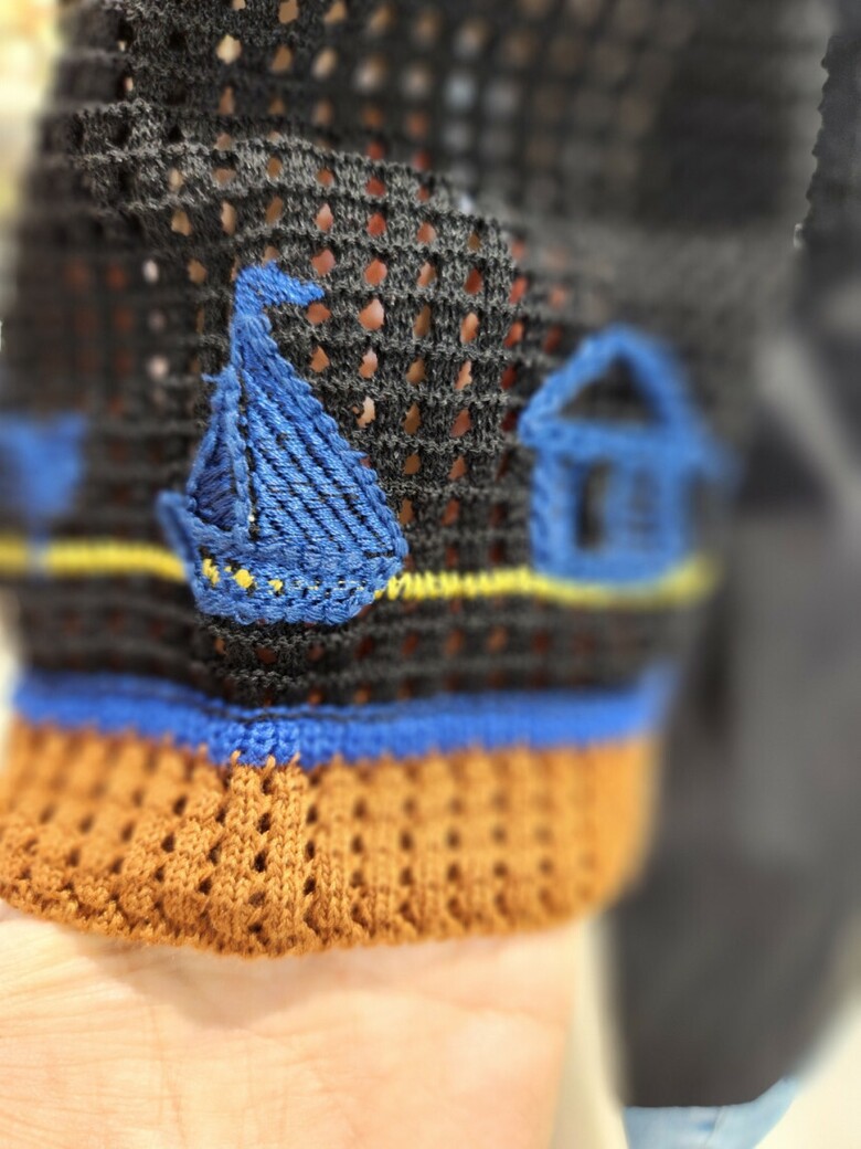 7.니트류는 자가드 프린트 기법으로 제작되어 앞부분에 예쁜 프린트처리가 되어 있습니다