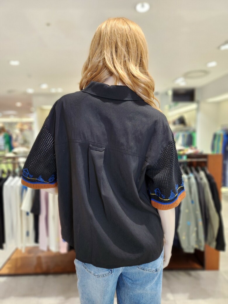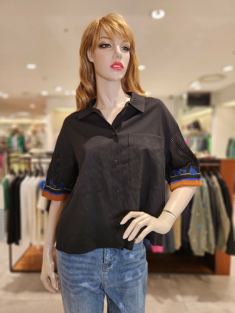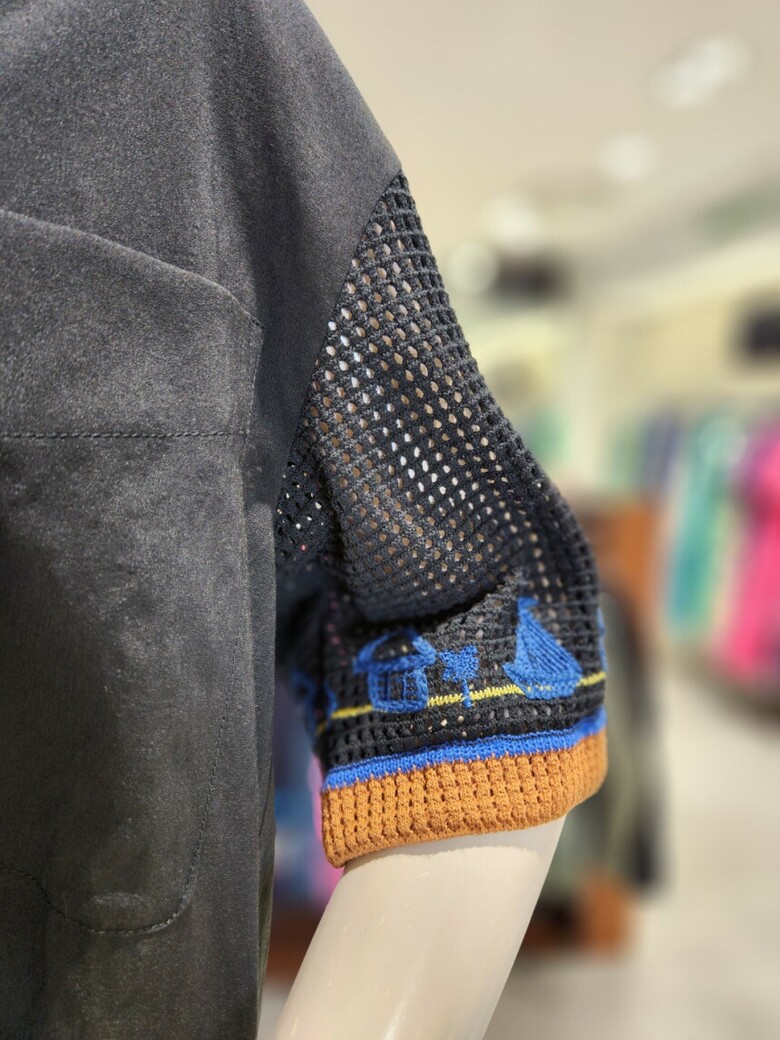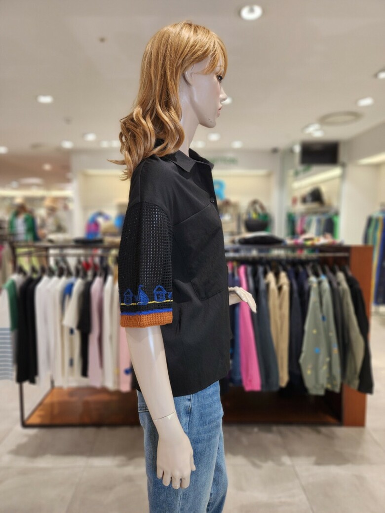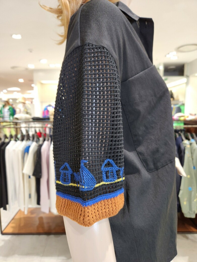 ·소매부분 니트 배색과 자수