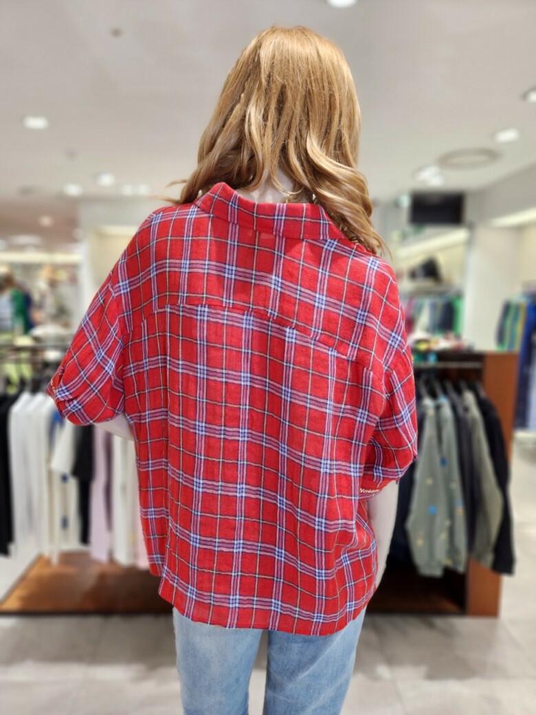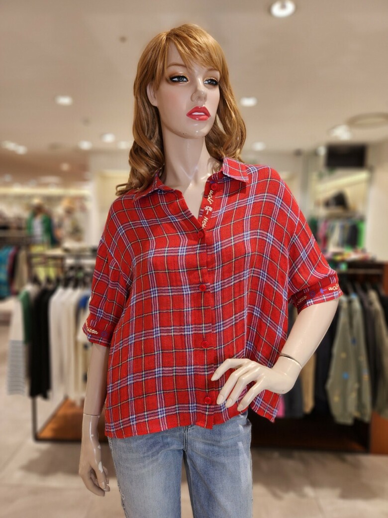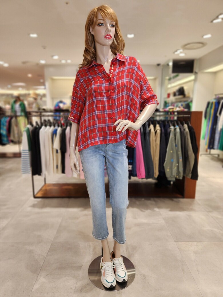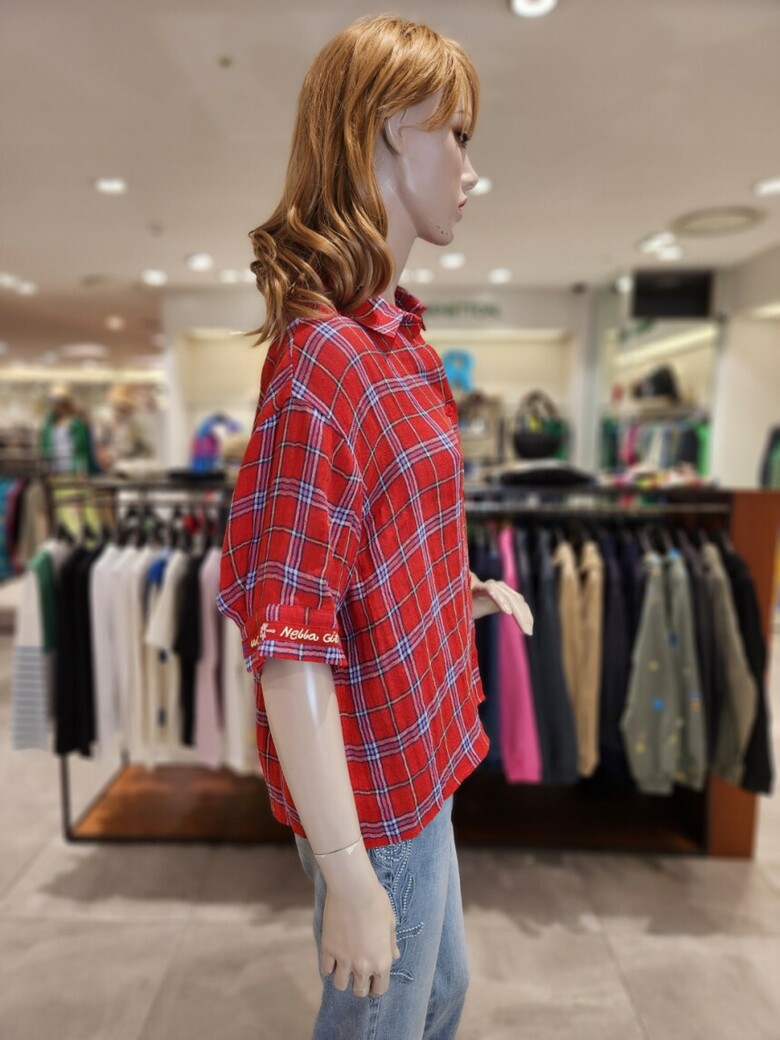 간편한 스타일링을 하기 좋은 체크패턴의 마 블라우스입니다