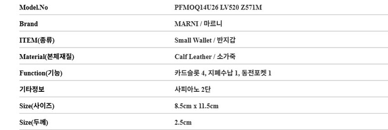 | 4. 제조사 | 마르니/MACHO-병행수입 |