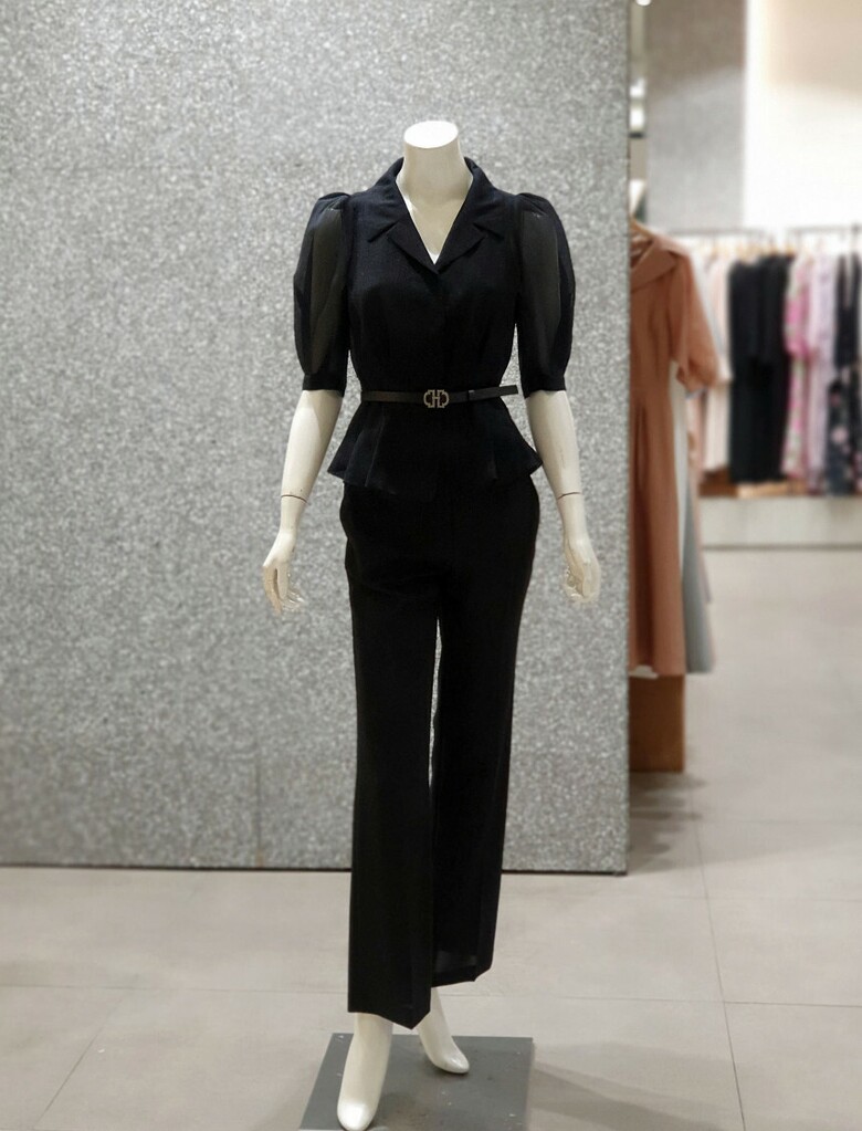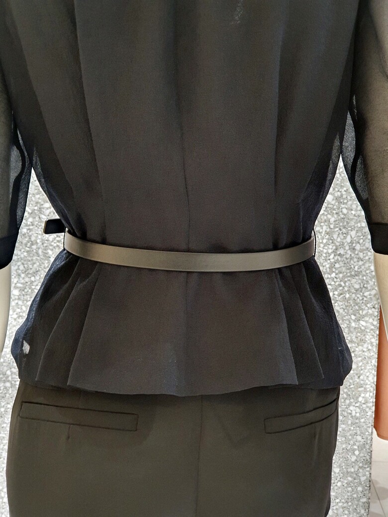 슬림한 허리 핏에 플레어 지는 헴 라인의 페플럼 디자인입니다.