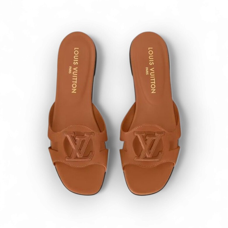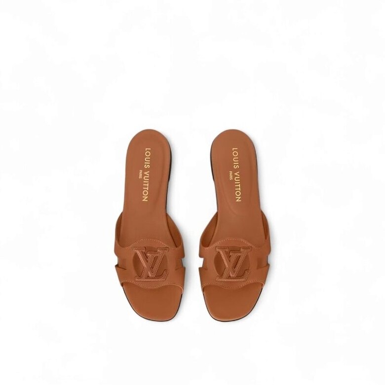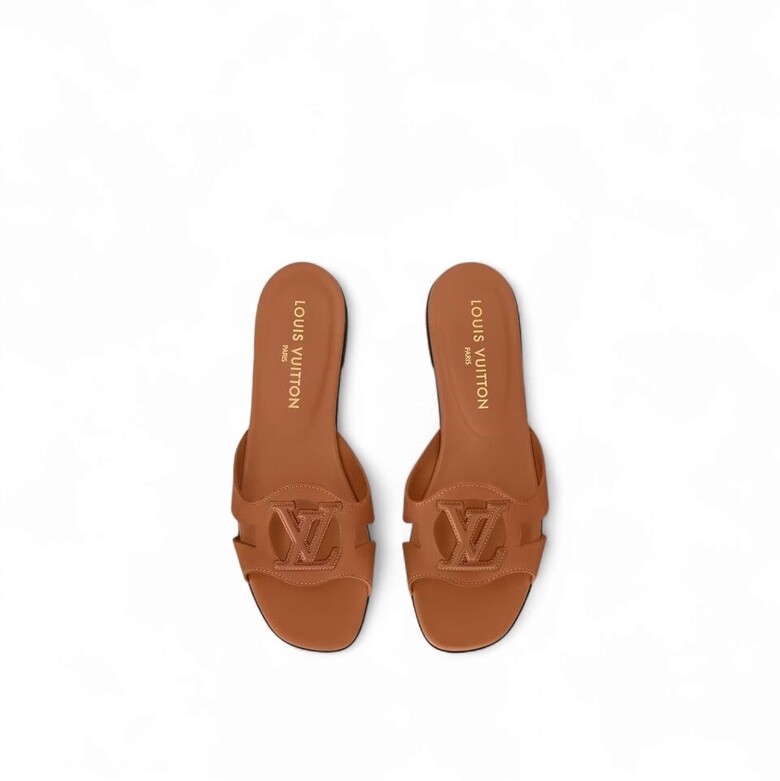 [명품] 루이비통 여성 샌들 슬리퍼 LV 이솔라 플랫 뮬 골드 꼬냑 1ABP25